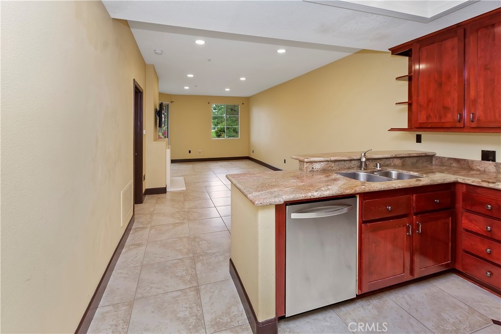This beautiful lower-level single-story condo has a beautiful view of the golf course just through the sliding glass doors of living room and bedroom. You can relax and enjoy the spectacular golf course views on the private covered patio while drinking your morning coffee or sipping a wine after work. This gorgeous one bedroom, one bath updated condo is located in the highly desirable Rancho Veracruz community! The spacious living room with cathedral ceilings offers plenty of natural sunlight and cozy gas fireplace. The gourmet kitchen boasts granite counter tops, upgraded cabinets, and recessed lighting. Spacious master bedroom has private sink and vanity apart from bathroom and a large walk-in closet. Complete with upgraded tile floors throughout makes cleaning a breeze. There is also a stackable washer and dryer included in unit for your ease. Bathroom is remodeled with brand new designer shower/tub used just once. The amenities at Rancho Veracruz include two pools and spas, an exercise center and also a clubhouse. Association dues include water and trash. Conveniently located near excellent schools, The Market Place, parks, freeways, toll road, etc. Great place to call home! Rancho Veracruz residents are attracted to Rancho Veracruz due to a combination of the fantastic amenities, the quiet neighborhood, and the many trails. Also within a short distance are beaches, public schools, grocery stores, fitness centers, the Marconi Automotive Museum, and the Tustin Sports Park. This home won't last long. Must see!