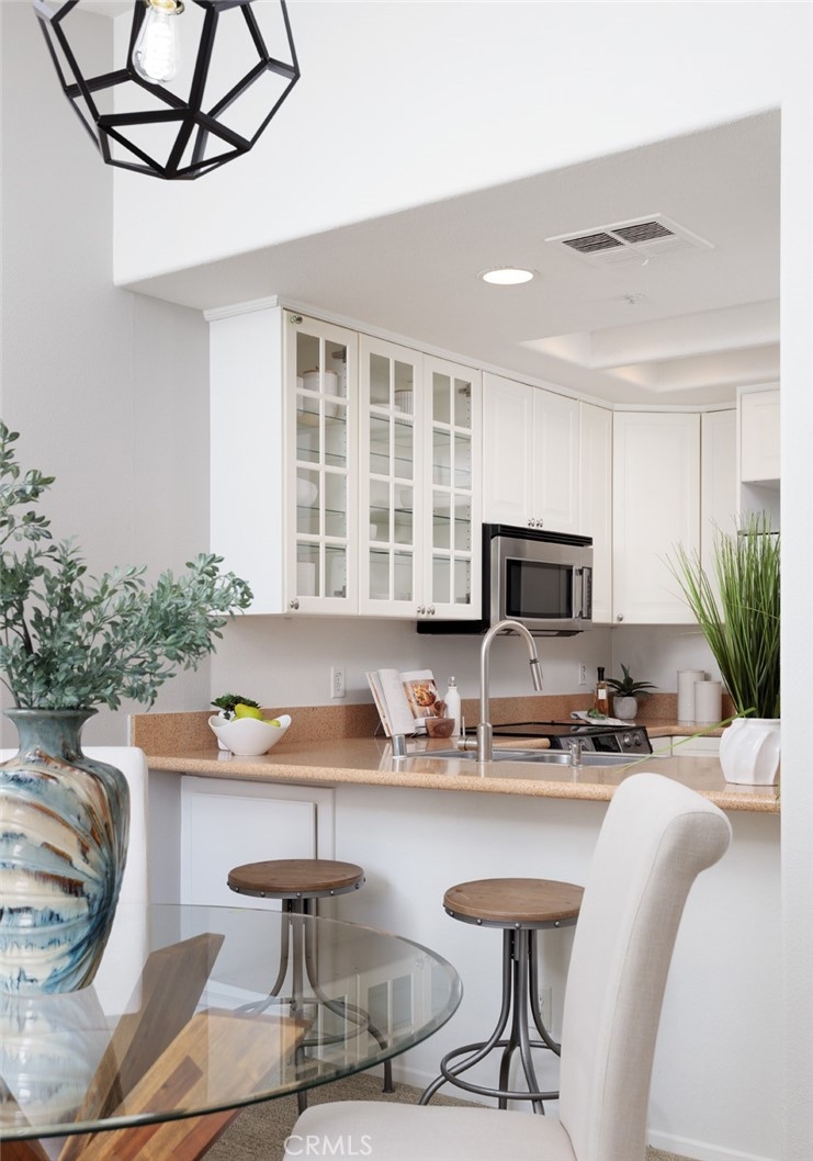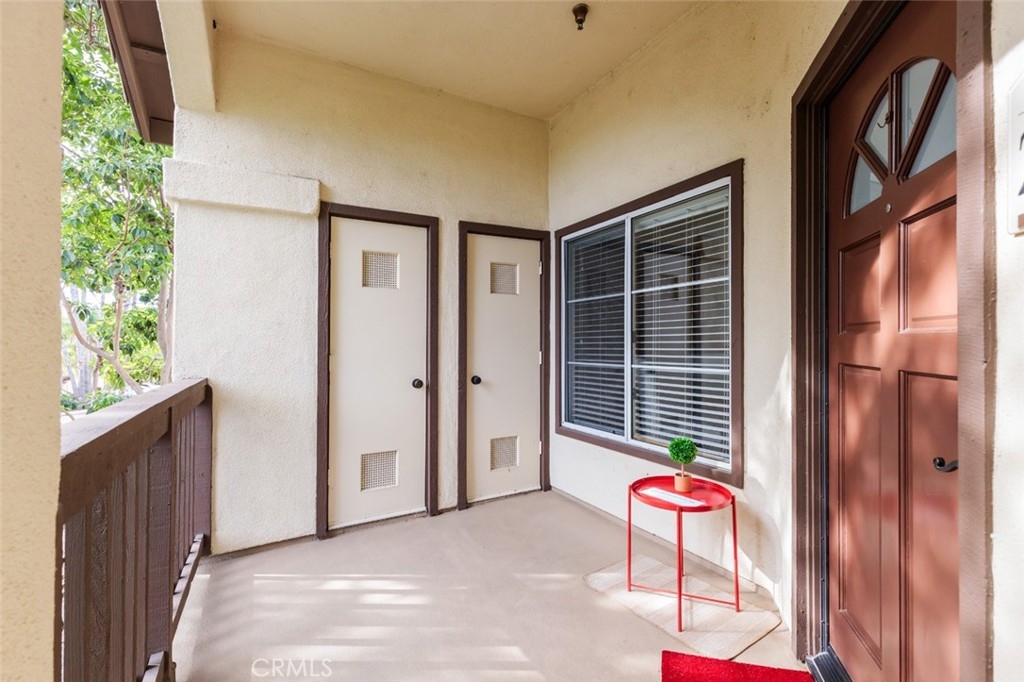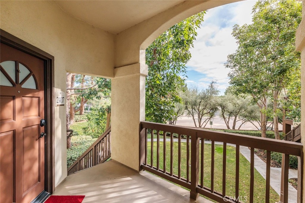 UPDATED * DUAL MASTER * CORNER LOCATION * UPPER LEVEL * 2 CAR GARAGE * LAUNDRY INSIDE…Discover this beautifully upgraded 2-bedroom, 2-bathroom condo nestled in the sought-after Rancho Veracruz community in Tustin Ranch. This corner unit home boasts upgraded kitchen appliances, vaulted ceilings, and freshly painted interiors, providing a welcoming and bright atmosphere. The kitchen features remodeled cabinets and a convenient laundry area tucked away in the hallway. The cozy living room offers a fireplace and opens to two enclosed balconies, providing picturesque views and outdoor relaxation opportunities. This upper-level condo offers tranquility, lovely morning light, and ample natural daylight. Just steps away from the community pool, it enhances the resort-like feel of the neighborhood. You'll have the convenience of an oversized two-car garage and ample guest parking. Monthly HOA dues of $390 cover water and trash services, making living here even more hassle-free. Rancho Veracruz offers fantastic amenities, including multiple pools, spas, a fitness room, and clubhouse access. You'll also appreciate the proximity to the Tustin/Irvine Marketplace, parks, hiking trails, shopping, entertainment, and top-rated schools like Ladera Elementary, Pioneer Middle School, and Beckman High School. A quick bike ride to Peters Canyon trails as well as the Mountain to the Sea Trail for direct access to the beach on a paved path. With easy access to major transportation routes, this condo offers both convenience and comfort, making it the ideal place to experience the best of Orange County living. Don't miss the opportunity to make Rancho Veracruz your new home!