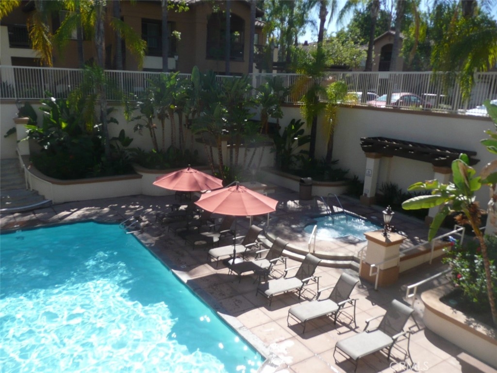 Welcome to the resort like community of Rancho Vera Cruz. This contemporary architecture is sure to make you feel like you are on vacation with amenities such as 2 pools, 2 spas, clubhouse and fitness center. Just steps away from the Tustin Ranch Golf Course, this one bedroom condo boasts a bright and airy floorplan with plenty of natural sunlight. As you walk up the stairs to your front door you are greeted by a sizeable patio deck, perfect for a table and chairs for those evening barbeques. Upon entering the unit, an oversized living room with a gas fireplace greets you. A dining area off the front room and kitchen is perfect for those intimate dinners. The kitchen includes a range, microwave and dishwasher. The stainless steel sink is positioned to look out the windows at the deck and beautiful landscaped grounds. The bathroom has been remodeled with new shower doors, a modern light fixture and beveled mirror. In the hallway you will find a laundry closet which includes a stackable washer and dryer. The large bedroom includes a ceiling fan for those nights where the central air conditioning may be too much. Plenty of room for clothes and other belongings in the large walk in closet. Close to the Market Place, restaurants, entertainment, parks, hiking trails and great freeway access. Don’t let this one get away. Call today for a showing!