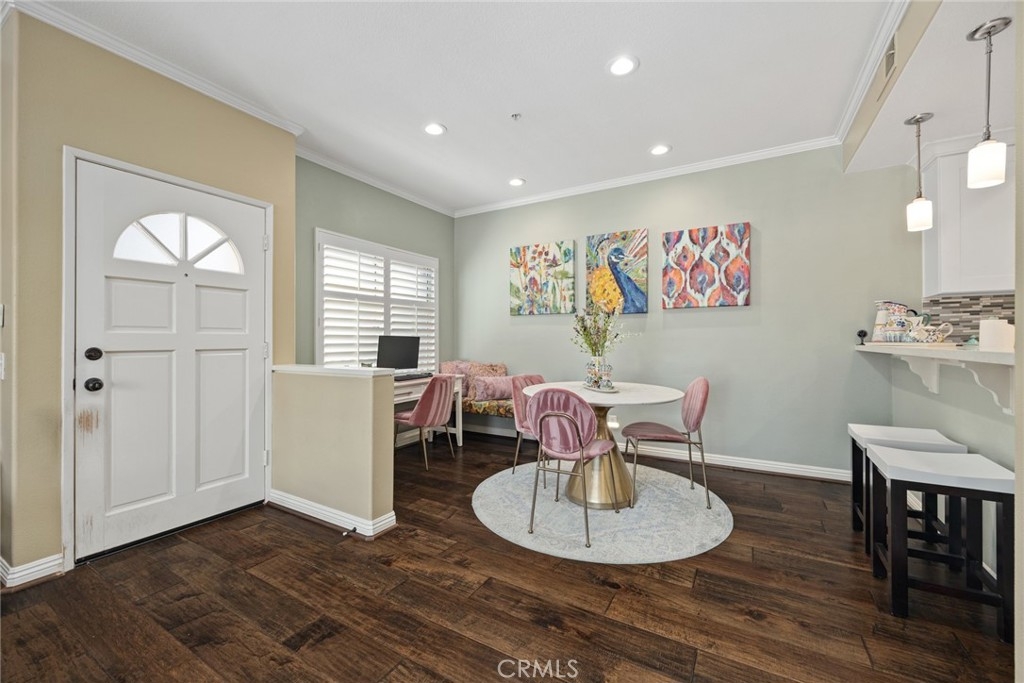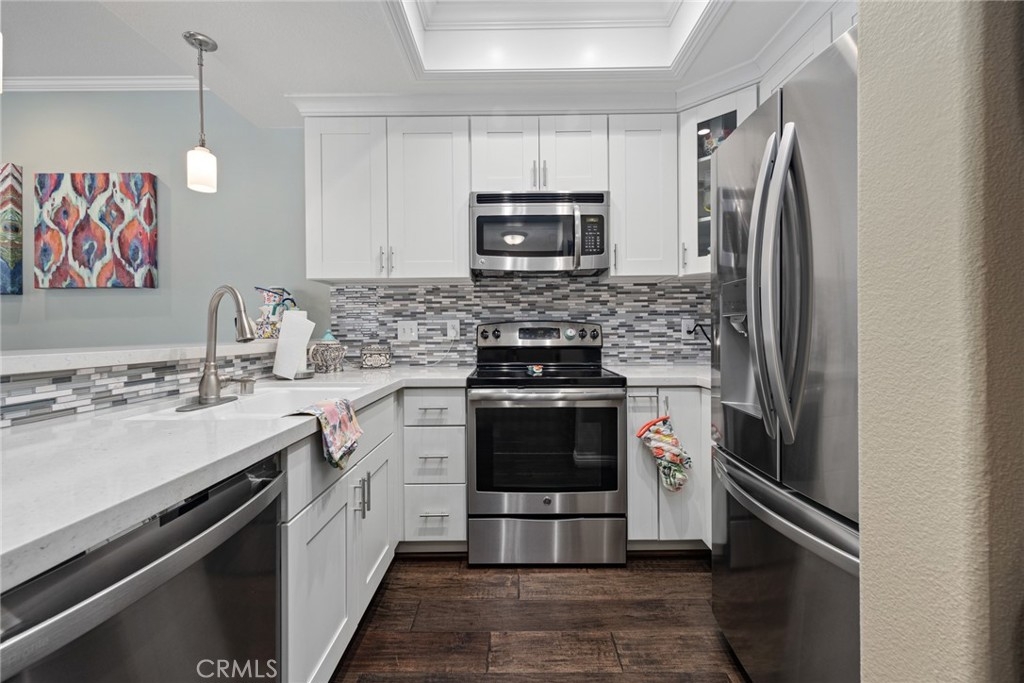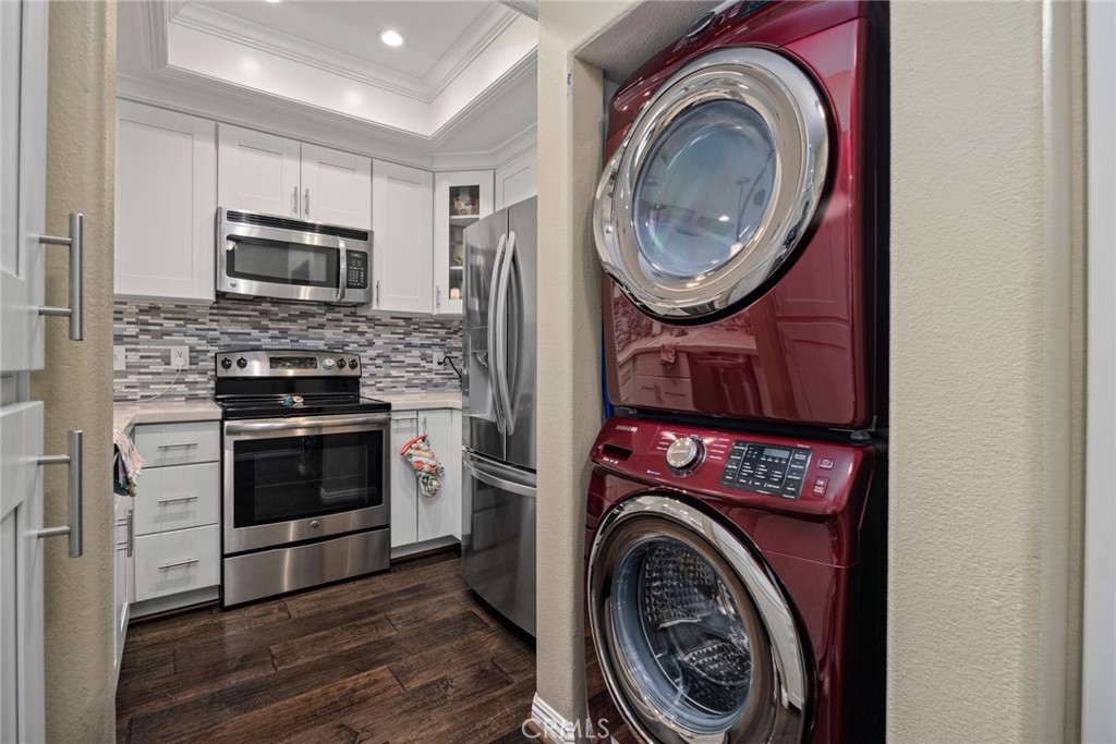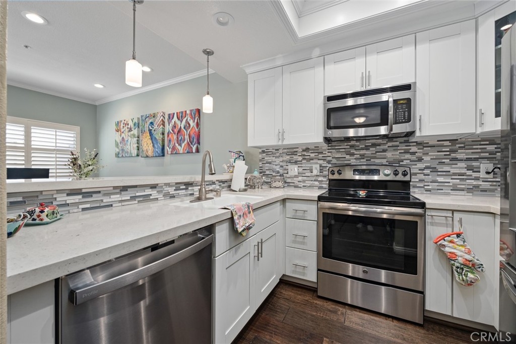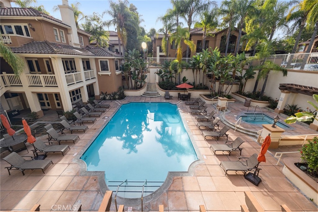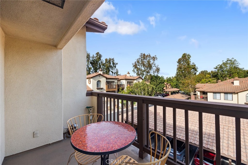 This one is a beauty! This upper level one bedroom (no one living above) is located in the desirable Rancho Veracruz community and has been remodeled with gorgeous upgrades throughout! Spacious living room with fireplace, wood flooring and recessed lighting is open to the dining area and kitchen and is a great floor plan for entertaining. The gourmet kitchen perfect for the chef boasts upgraded cabinetry, quartz counter tops, mosaic tile backsplash, stainless steel appliances and plenty of cabinet and counter space plus the refrigerator is included! You're sure to appreciate the remodeled bathroom vanity area along with the updated tub, glass shower door and extensive use of tile. Built-in cabinets for your linens off the bathroom area and two spacious closets (one walk-in....both mirrored) in the bedroom. Additional upgrades include plantation shutters, recessed lighting, updated baseboards plus crown molding and ceiling fans in the living room and bedroom to help keep you comfortable and much more! Convenient inside laundry with front loading washer and dryer included. One assigned carport #323 just a few steps away! Rancho Veracruz offers two sparkling pools and spas, an exercise center and also a clubhouse available to rent at a nominal fee. Conveniently located near The Market Place, shopping, restaurants, parks, hiking trails, freeways, toll road, etc. Water and trash included in your homeowner association dues and no mello roos! Great place to call home!