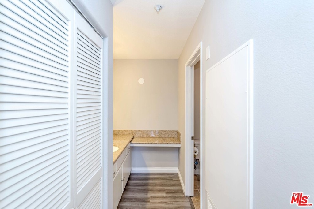 A beautiful one-bedroom condo in the resort-like community of Rancho Veracruz is ready to move in! It has 1 bedroom, 1 bath, and a private balcony with 1 assigned carport. No one living above or below. Bright and cozy end unit! Remodeled flooring, kitchen cabinet/countertops, wood shutters, and recessed lighting. Laundry inside! Plantation shutters separate the living room from the bedroom, and the bedroom includes a walk-in closet with shelves. Washer & dryer are included. Resort-style living amenities include 2 pools, 2 spas, a clubhouse, and an exercise center. Close to The Market Place, restaurants, shops, entertainment, parks, hiking trails, freeway, toll roads, and more!