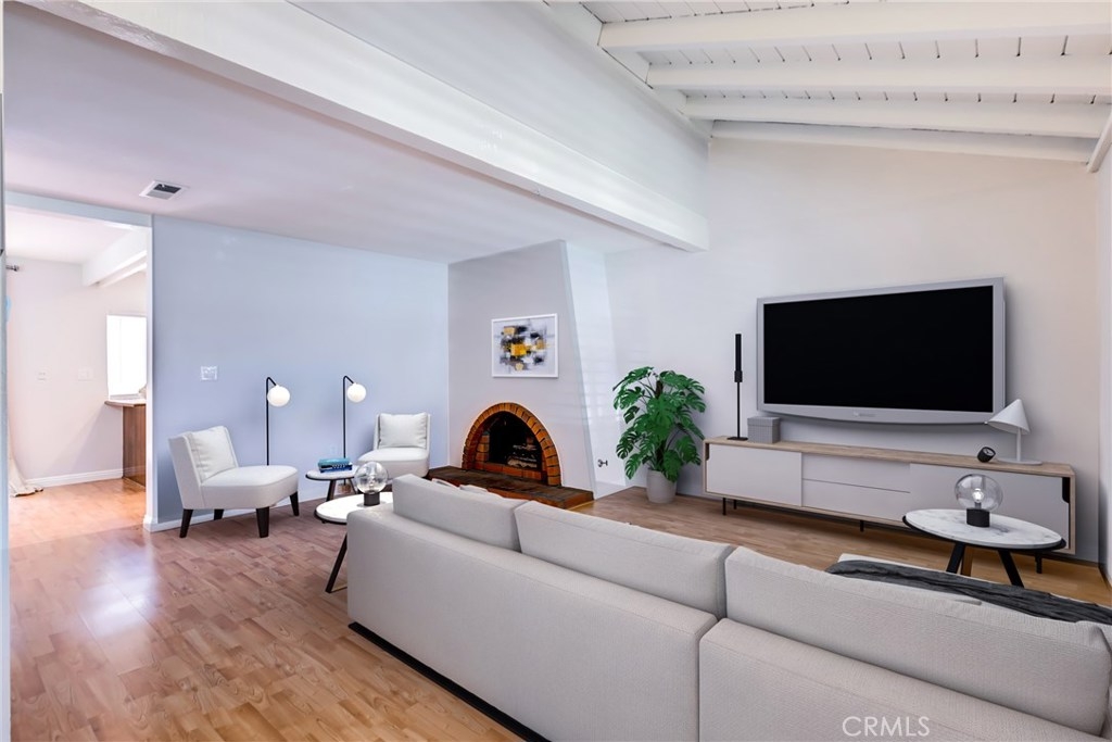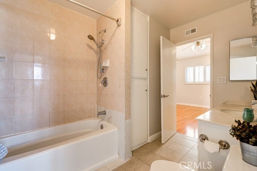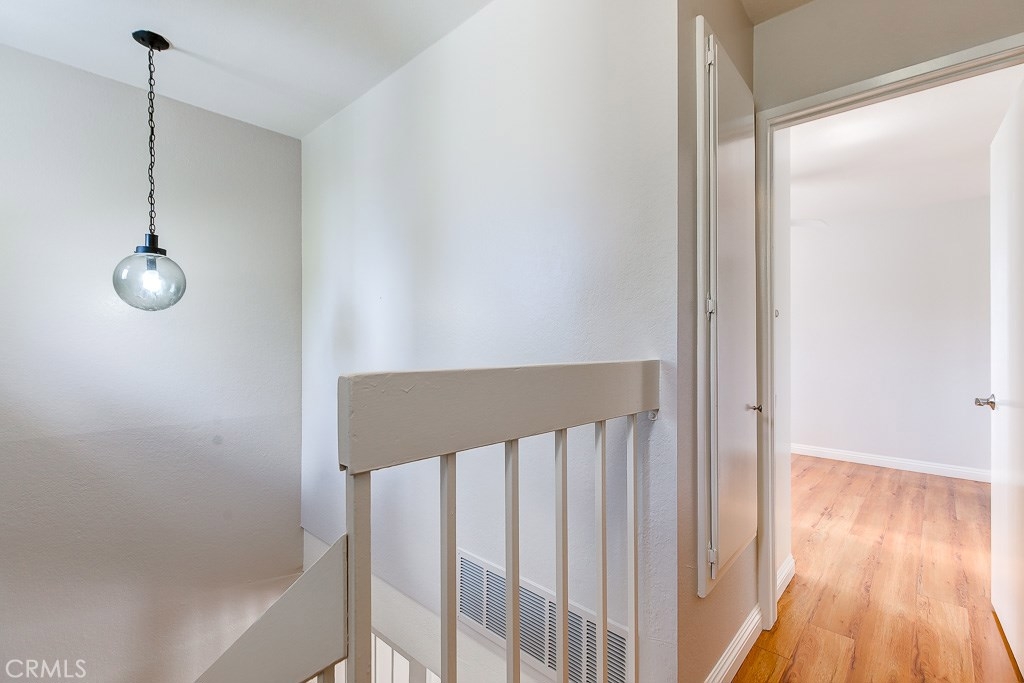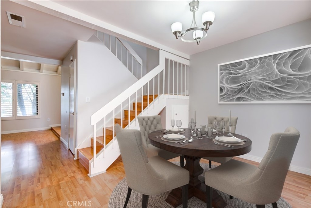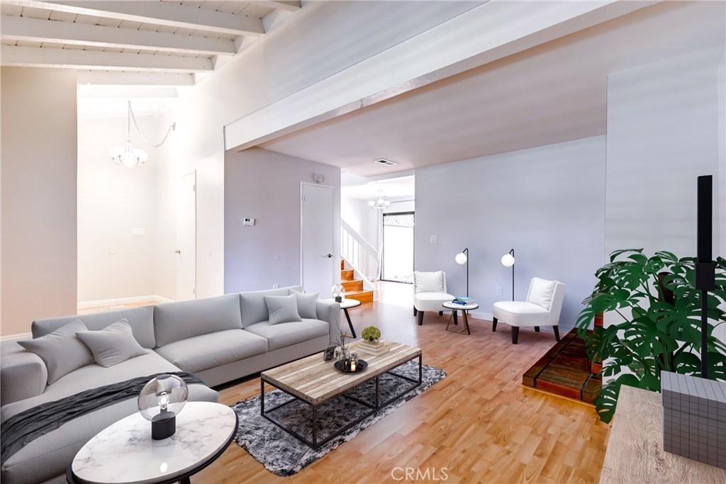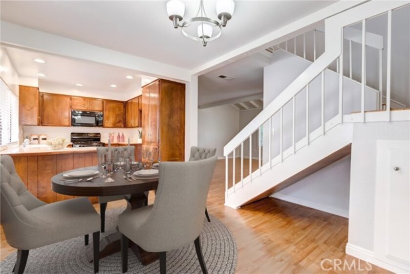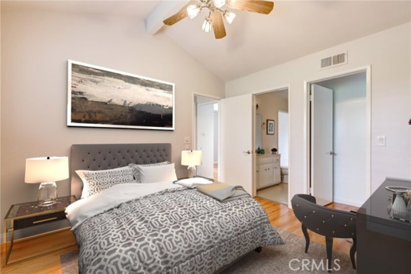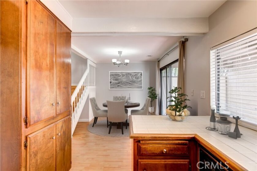 Beautifully upgraded 2 bedroom 1.5 bath end unit townhome located in a quiet 22 unit PUD community. This home is extremely private and it feels more like a Single Family House than a townhouse. It has a private front entry, a charming patio, and oversized 2 car garage with your own driveway that means extra parking for your guests. The open floor plan features vaulted ceiling in living room, brick fireplace, and a large picture window filled with natural light. The spacious master bedroom features a vaulted ceiling, with walk in master closet. The other bedroom is roomy with natural light and large closet. The whole house is freshly painted with neutral color, newer wood floor in living room, kitchen, and 2 bedrooms, newer tile floor in bathrooms. Other upgrades include: new roof, new water heater, Plantation Shutters, Dual Pane Windows, and Central Air. Only 1.5 miles from the Tustin Marketplace. Within walking distance to Veeh Elementary, Utt Middle School and Tustin High School, the location cannot be beat.