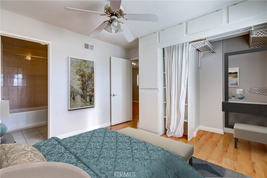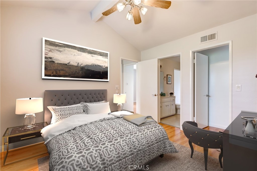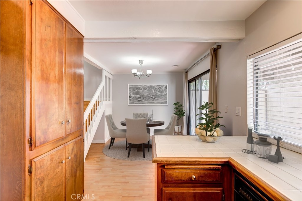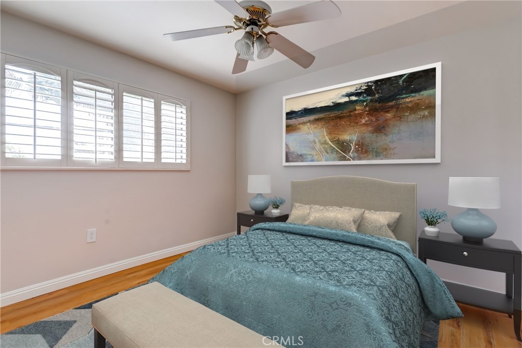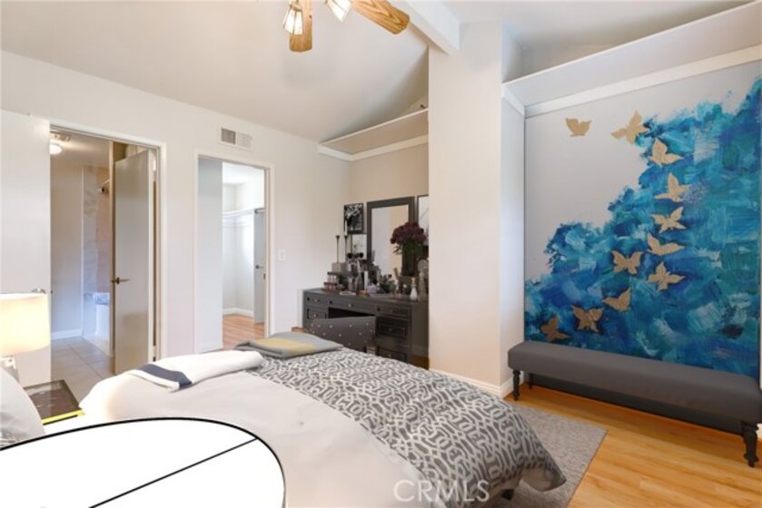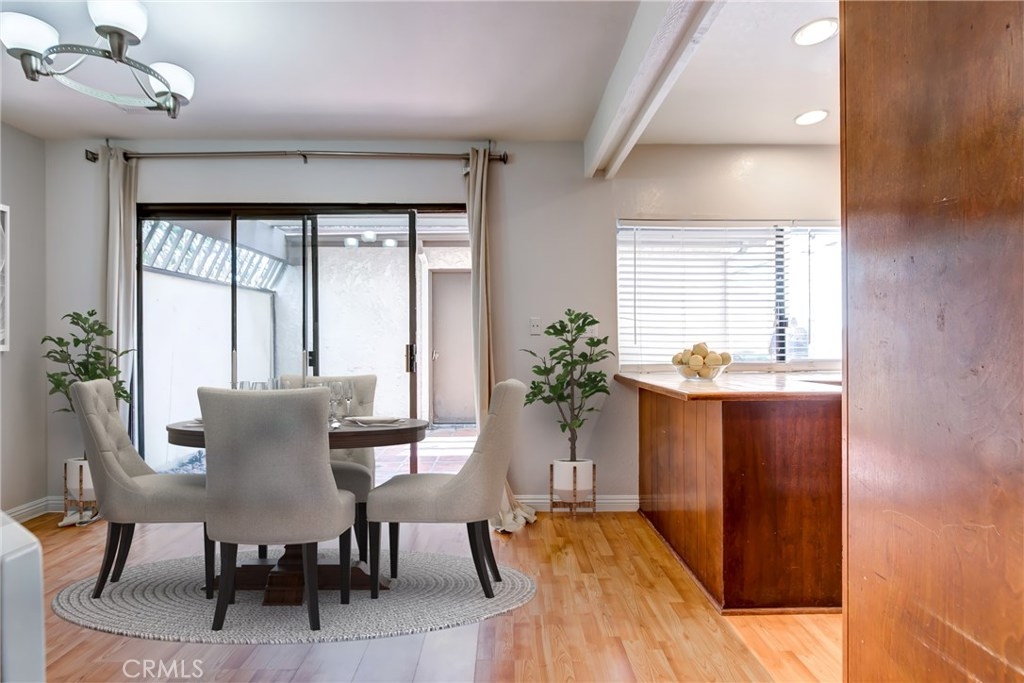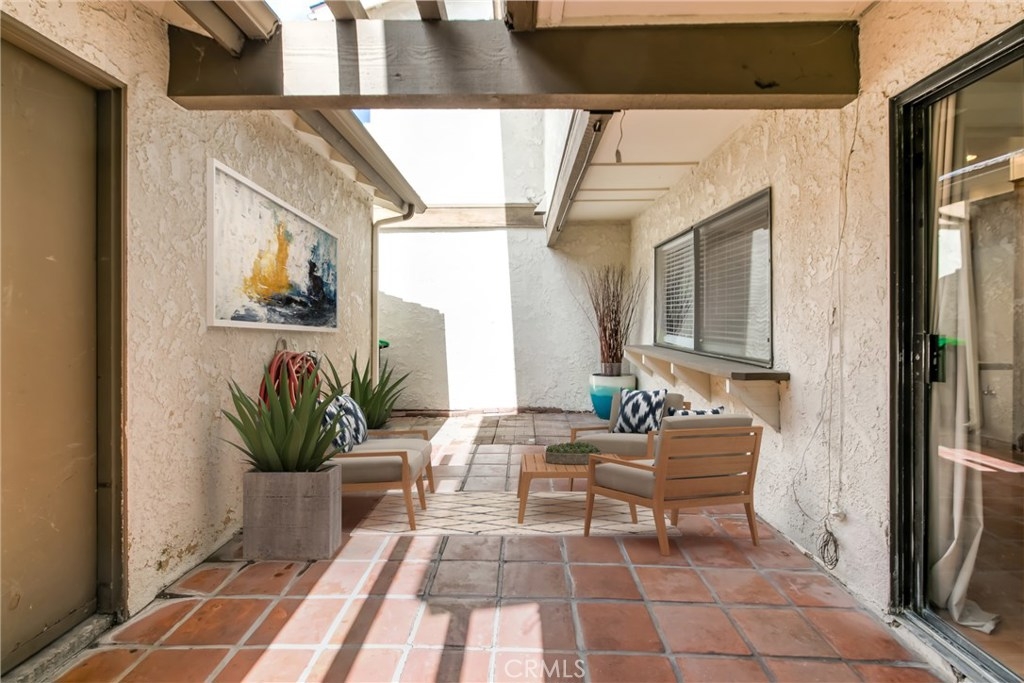 Beautifully upgraded 2 bedroom 1.5 bath end unit townhome located in a quiet 22 unit PUD community. This home is extremely private and it feels more like a Single Family House than a townhouse. It has a private front entry, a charming patio, and oversized 2 car garage with your own driveway that means extra parking for your guests. The open floor plan features vaulted ceiling in living room, brick fireplace, and a large picture window filled with natural light. The spacious master bedroom features a vaulted ceiling, with walk in master closet. The other bedroom is roomy with natural light and large closet. The whole house is freshly painted with neutral color, newer wood floor in living room, kitchen, and 2 bedrooms, newer tile floor in bathrooms. Other upgrades include: new roof, new water heater, Plantation Shutters, Dual Pane Windows, and Central Air. Only 1.5 miles from the Tustin Marketplace. Within walking distance to Veeh Elementary, Utt Middle School and Tustin High School, the location cannot be beat.