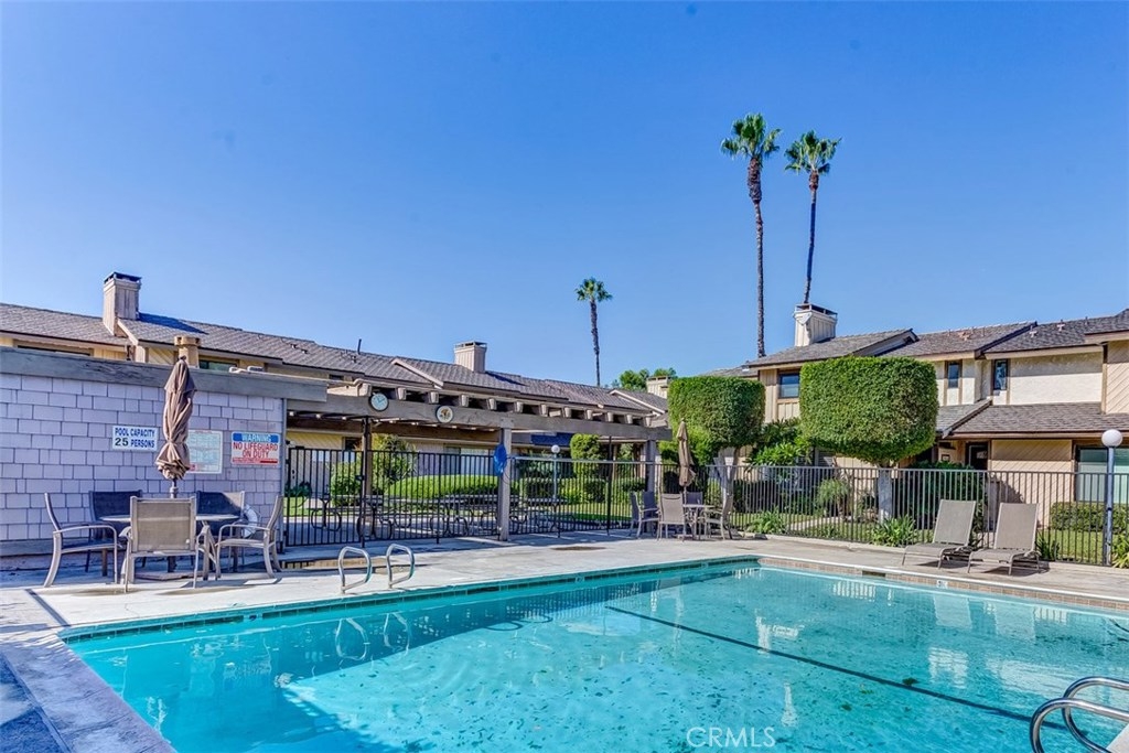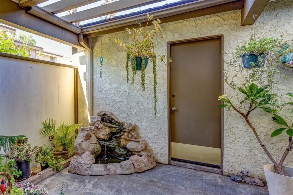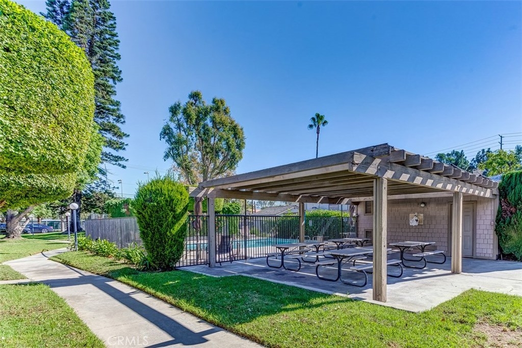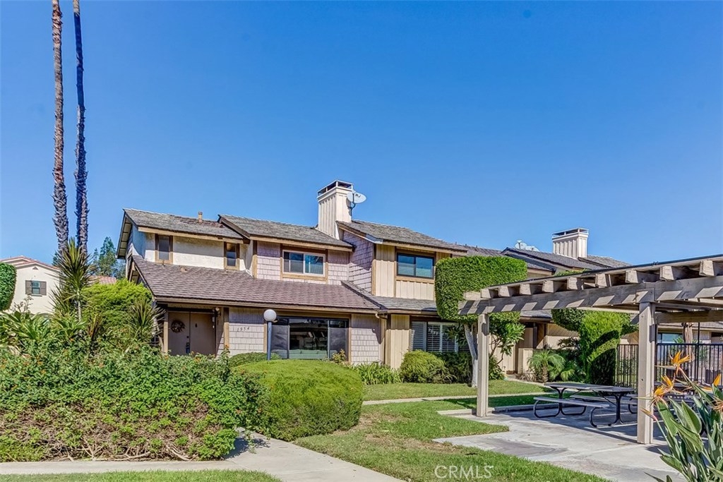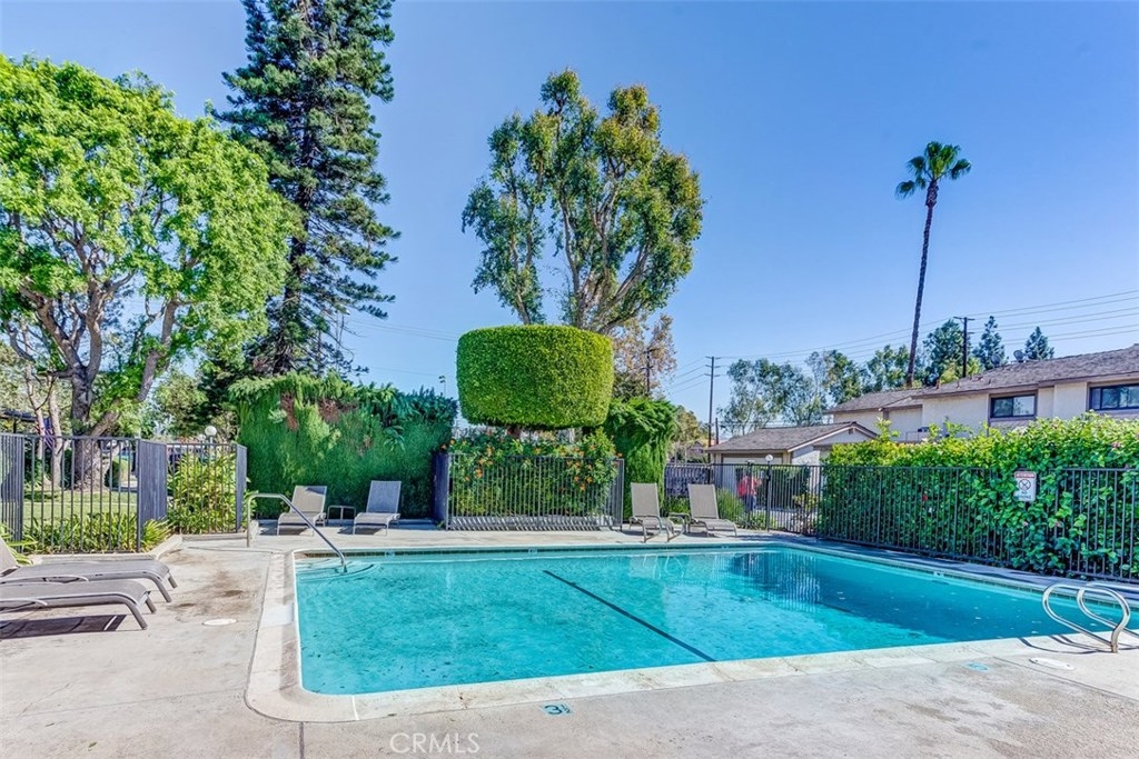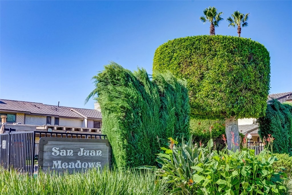 Charming 2 bedroom 1.5 bath end unit townhome is perfectly located just minutes from shopping, schools and OC job centers. Conveniently located in the intimate San Juan Meadows condo community, only 1.5 miles from the Tustin Marketplace. Within walking distance to Veeh Elementary, Utt Middle School and Tustin High School, the location cannot be beat. The open floor plan features a large picture window and brick fireplace and is filled with natural light from the park like HOA common areas. This move-in ready home has its own private patio perfect for summer entertaining. The spacious master suite features a vaulted ceiling, with walk in master closet. The other bedroom is roomy with natural light and large closet. The semi-attached 2 car garage has plenty of storage.