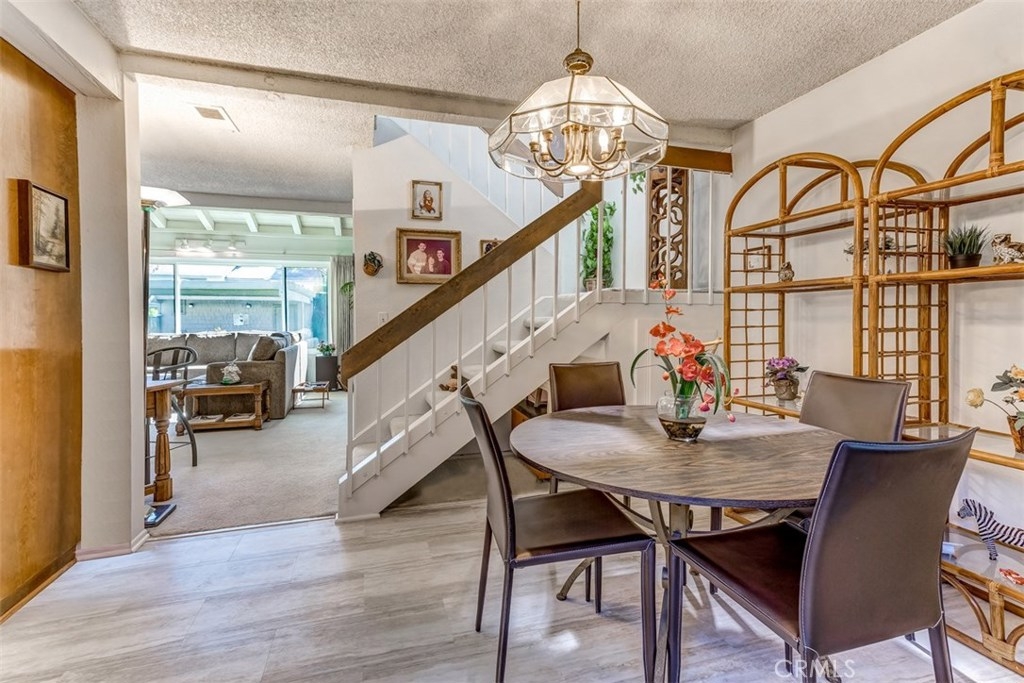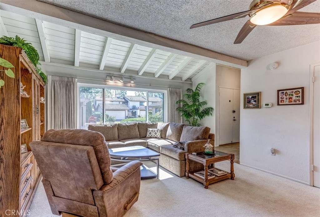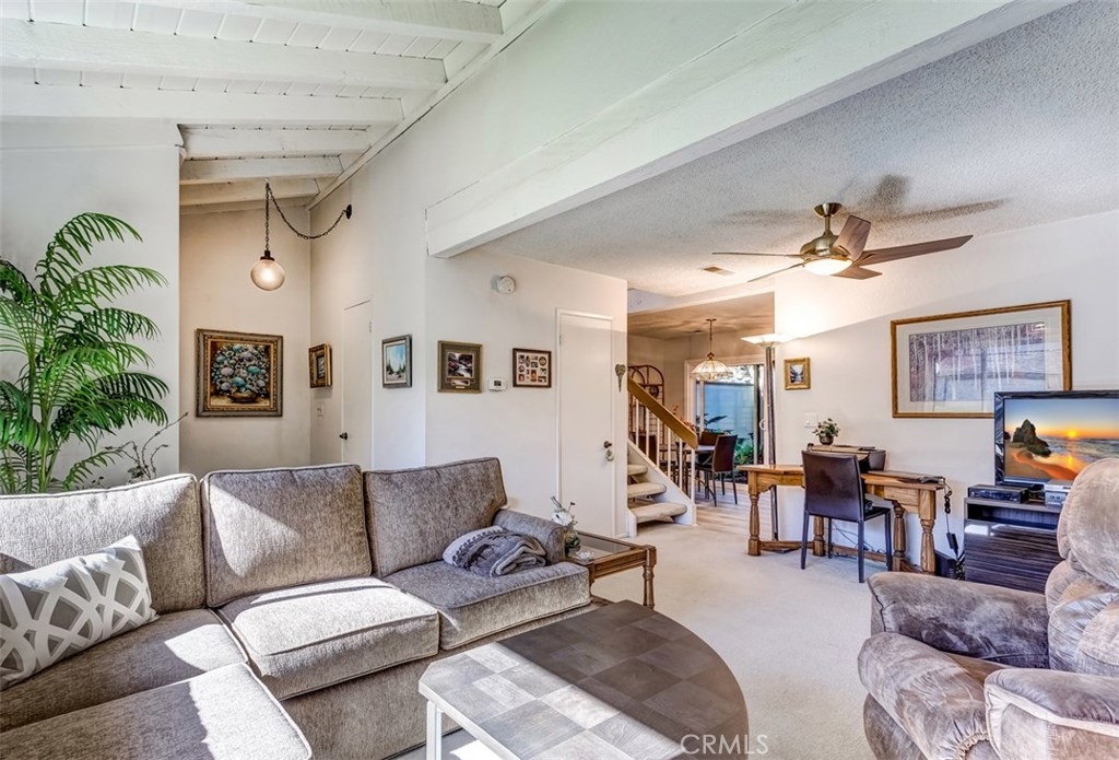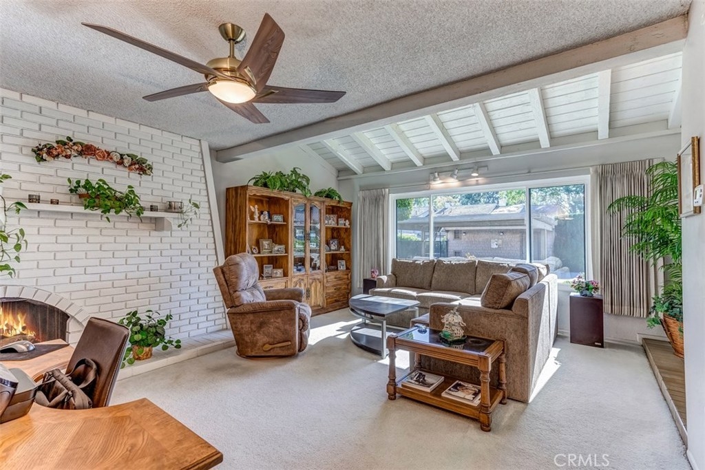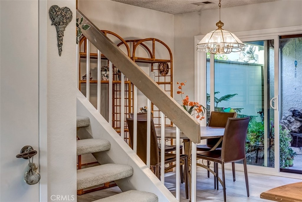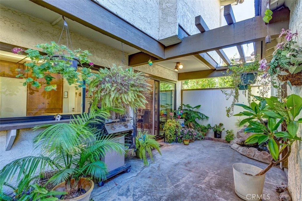 Charming 2 bedroom 1.5 bath end unit townhome is perfectly located just minutes from shopping, schools and OC job centers. Conveniently located in the intimate San Juan Meadows condo community, only 1.5 miles from the Tustin Marketplace. Within walking distance to Veeh Elementary, Utt Middle School and Tustin High School, the location cannot be beat. The open floor plan features a large picture window and brick fireplace and is filled with natural light from the park like HOA common areas. This move-in ready home has its own private patio perfect for summer entertaining. The spacious master suite features a vaulted ceiling, with walk in master closet. The other bedroom is roomy with natural light and large closet. The semi-attached 2 car garage has plenty of storage.