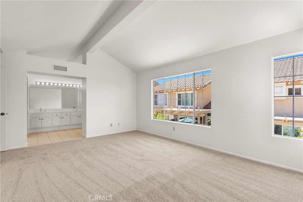 WOW! This 3 Bedroom, 2.5 Bath two story home located in sought after Sevilla is amazing. Super light and bright end unit with windows everywhere and cathedral ceilings. Fresh new paint throughout the entire unit. New carpet upstairs, New Luxury Vinyl Planks in most areas downstairs. Huge master bedroom with lots of natural light, vaulted ceilings and a walk-in closet. Giant wrap around yard area. Located near shopping, freeway access and award winning schools.