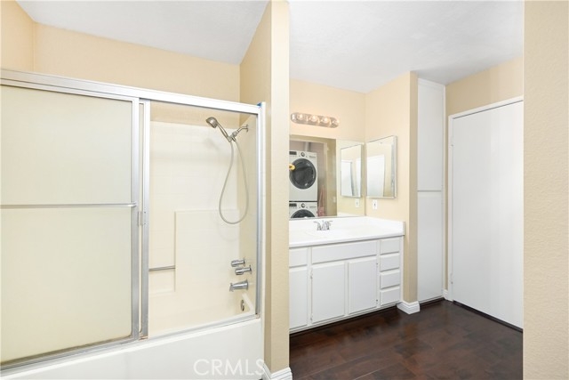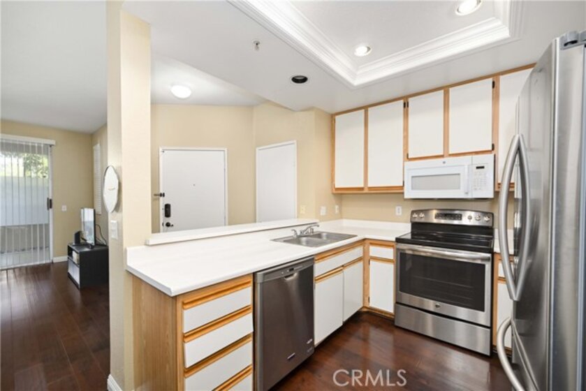 A rare and unique 1 bedroom ground floor condo with TWO detached 1-car garages in the popular Shadow Canyon community in Tustin Ranch! One of the two garages is a freestanding garage with a driveway, so you could securely park up to 3 cars. This peaceful ground floor home boasts a spacious enclosed private patio that could be accessed from the living room and the bedroom. The living room and the dining area has a sliding glass door access to the patio and the kitchen is equipped with an electric stove, a microwave, a dish washer, and cabinets for ample spaces for storage. The master bedroom also gets ample amount of natural light through the sliding glass door. The bathroom includes a walk-in closet and hookups for full-sized washer and dryer. Wood flooring throughout. HOA amenities include pools, spas, tennis court, BBQ, playground, and clubhouse. Walking distance to Tustin Ranch Golf Club and close proximity to the Marketplace and the District with many shops and restaurants.