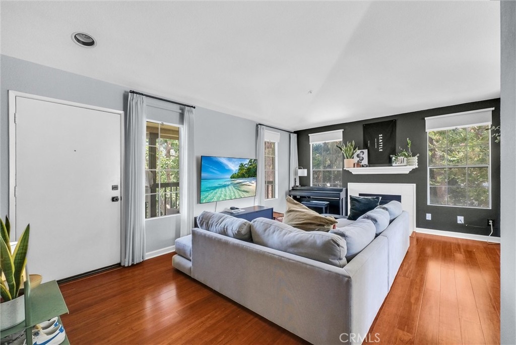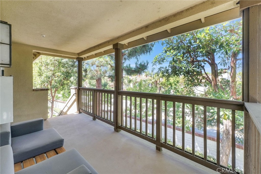 This well-maintained CORNER townhome sits in the sought-after community of Shadow Canyon – on the edge of the Tustin Ranch Golf Club. The upper-level home welcomes you with a large front porch and treetop views. Inside the front door, you'll find vaulted ceilings, a fireplace and beautiful hardwood flooring throughout (no carpets here!). And since this is a corner unit, two walls of windows fill the home with natural light. The kitchen has a great layout with endless cabinet storage, while the dining area overlooks the living room. The primary bedroom includes vaulted ceilings and a big walk-in closet, and the spacious ensuite boasts double sinks & a separate shower/toilet room. Down the hall, you'll find the guest room, a full bathroom and a big laundry closet with ample storage space. Don't forget about all the storage in the single bay garage on the ground level, and there’s additional carport parking, too. Shadow Canyon is zoned to excellent schools and residents enjoy amenities like a spa & two community pools, a fitness center, a tennis court, picnic areas and more. You can walk to the golf course, and Tustin Sports Park is less than 5 mins from your front door. There are countless shopping & dining options along Jamboree Rd., with the 5 Fwy only 10 mins away. Come experience everything this fantastic Tustin Ranch property has to offer!