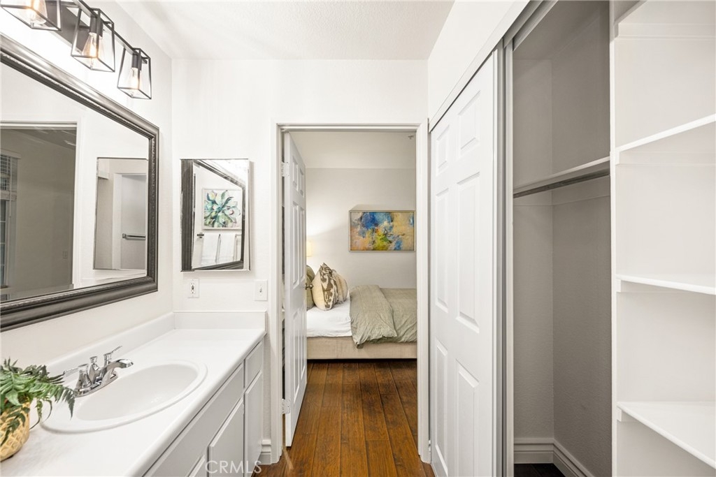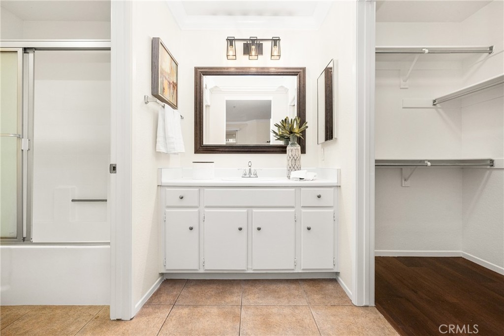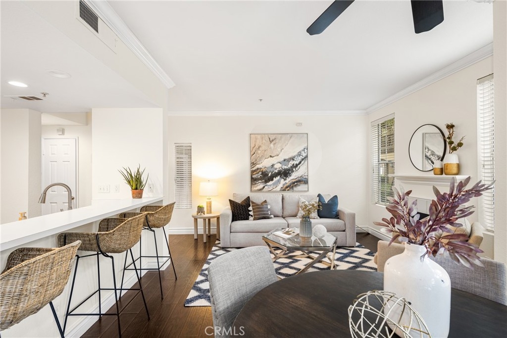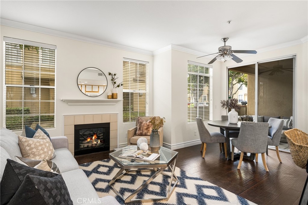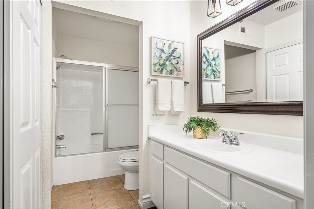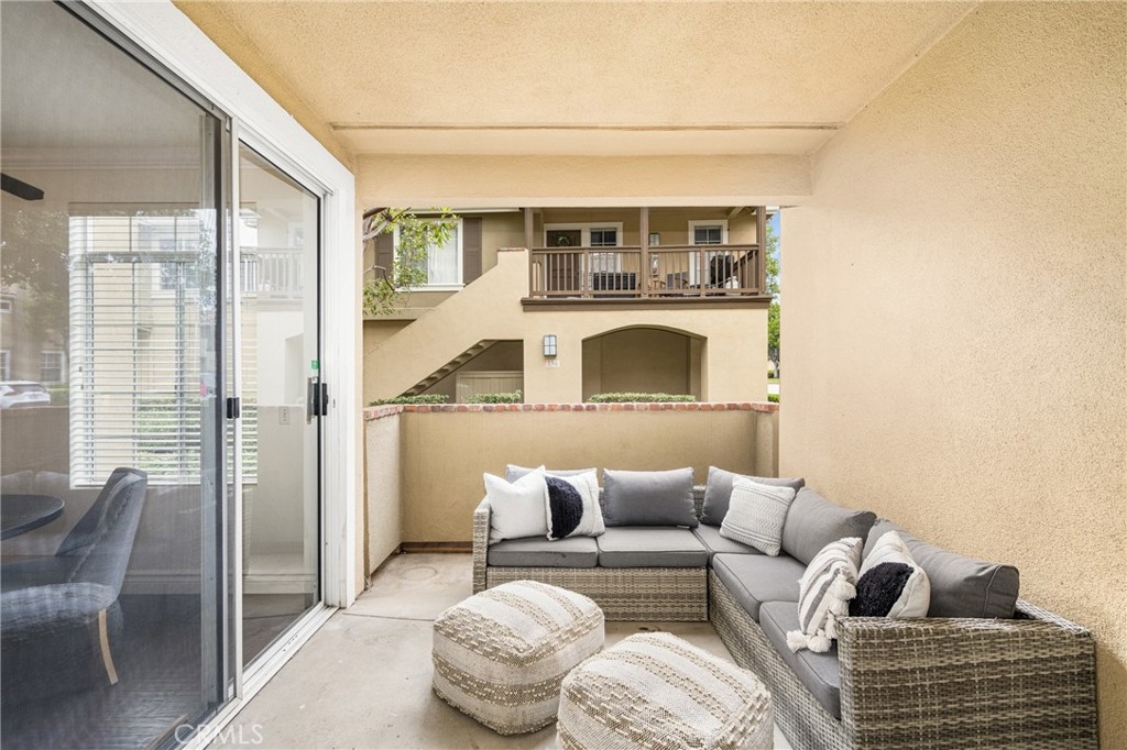 Welcome to this beautiful 2 bedroom, 2 bathroom Tustin Ranch condo nestled in the Shadow Canyon community. The home boasts high ceilings, fresh paint, and an open floor plan that seamlessly integrates the kitchen, dining, and living areas, and large, covered patio, perfect for hosting gatherings and relaxing. Two ensuite bedrooms with walk-in closets are located on opposite sides of the unit, providing privacy. Enjoy the convenience of the laundry closet between the two bedrooms and the one car garage with plentiful storage space. Ideally situated with easy access to parks, trails, shopping, dining, entertainment, freeways, toll roads, and award-winning Tustin Ranch Schools, don't miss the opportunity to make this home yours.