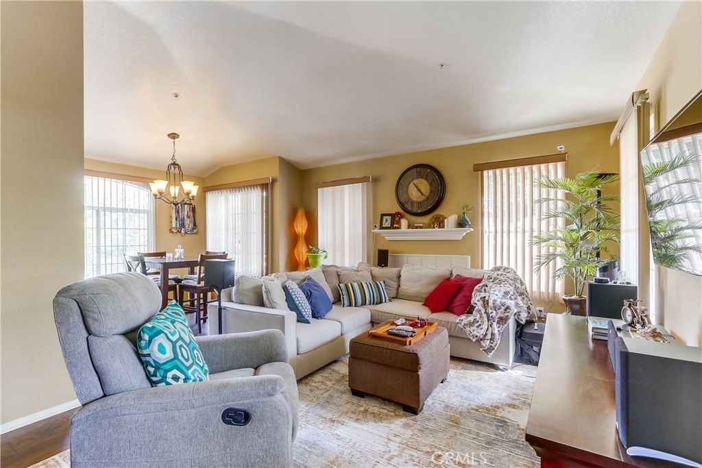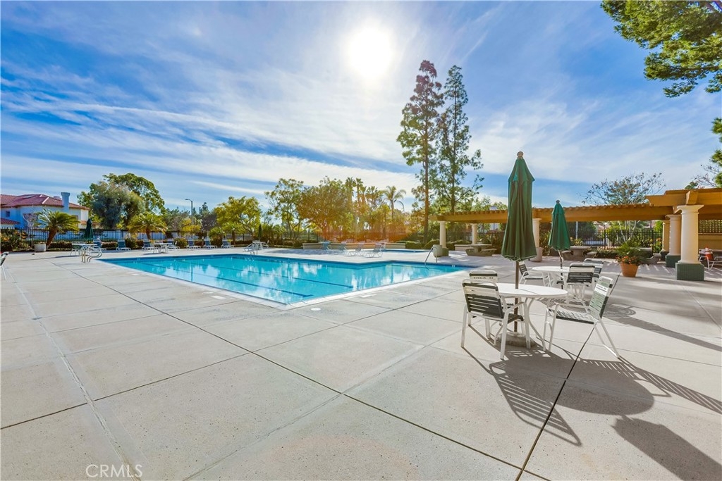 Amazing opportunity to snatch up this rare gem, a desirable upper-level carriage end unit ideally located in the highly sought-after Shadow Canyon community in prestigious Tustin Ranch nestled just steps from the greens of Tustin Ranch Golf Club. The sunny front covered patio welcomes you into this lovely home. Once inside you will adore the open floor plan with a neutral paint palette, high vaulted ceilings, and gorgeous laminate floors, all setting the stage for a superb living environment. The living area boasts a cozy fireplace and is open to the dining area with custom lighting perfect for relaxing and entertaining with family and friends. The light and bright kitchen has an abundance of storage and cabinet space and matching appliances, perfect for any home chef. The spacious master suite is a private retreat with vaulted ceilings, a prized walk-in closet, and a master bath with dual vanities. Guest bedroom and a full guest bath, plus a convenient laundry closet with full size appliance hookups completes this well-designed floor plan. The sunny outdoor patio is perfect for morning coffee or BBQing with friends. Home includes a detached 1 car garage below and an assigned carport space. Well-maintained community amenities include plenty of guest parking spaces, Pool, Spas, Gym/Exercise Room, Clubhouse, in addition to resort like amenities at Gallery Park which include lighted tennis courts, playground, clubhouse, multiple pools & spas, picnic and lounging areas. Superbly located within walking distance of local schools and numerous parks, including Citrus Ranch Park with its fragrant orchards, playgrounds, and hill top views, and close to an abundance of recreation including Tustin Sports Park, Orchard Hills, Peters Canyon Regional Park, Irvine Regional Park, and Limestone Canyon Regional Park. Easy Toll Road access and close to an abundance of dining, shopping, and entertainment at nearby Tustin Market Place.