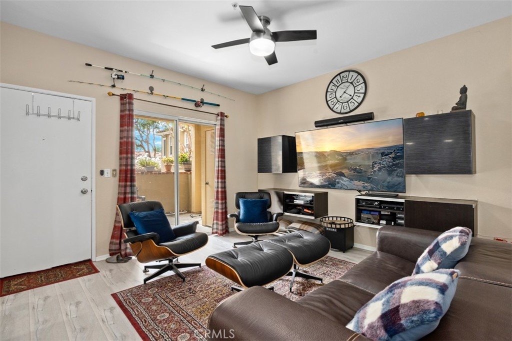 Welcome to the little gem situated in a highly desirable location of Tustin Ranch! This marvelous one bedroom unit offers the opportunity to experience the unique Southern California life style. The Tustin Golf Course and Tustin Market Place is minutes away, where you can experience a wide range of dining and shopping. Upon entering, this unit is flattering with charming balcony to enjoy your morning coffee . The open floor plan living room with modern laminated wood flooring, well designed kitchen with custom built-in bar for entertaining guests. The spacious bedroom comes with large walk-in closet. The bathroom is upgraded with modern design. This exclusive community also offers two pools, spas, workout room and, tennis court. Hurry to make this your DREAM HOME!