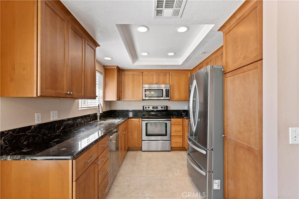 Price Reduction and Priced to Sell!! This move-in ready corner unit condominium in the popular Shadow Canyon community in Tustin Ranch welcomes you with its vaulted ceilings and open layout. The living space with an abundance of light flows naturally into the dining area and kitchen featuring custom cabinets and granite countertops. Down the hallway, you'll find two spacious bedrooms. The master bedroom boasts a walk-in closet along with an en suite bathroom and dual sinks. Other notable features include laundry in unit, granite fireplace, and private front porch. Just below, you'll find the extra long 1-car garage with ample room for additional storage and steps away is the second assigned covered parking. HOA offers 2 pools and spas, gym, clubhouse along with Tennis Courts, BBQ and more! Conveniently located within walking distance to Tustin Ranch Golf Club and close proximity to the many shops and restaurants at The Marketplace and The District. FHA & VA Approved! Photos are digitally staged.