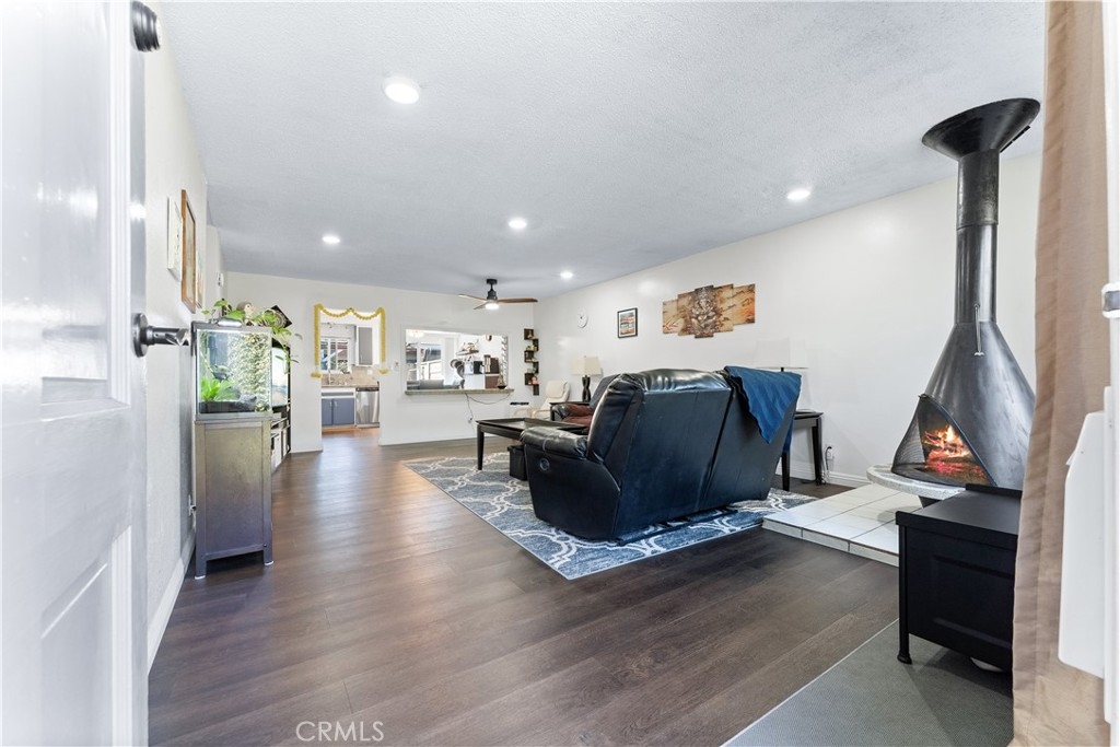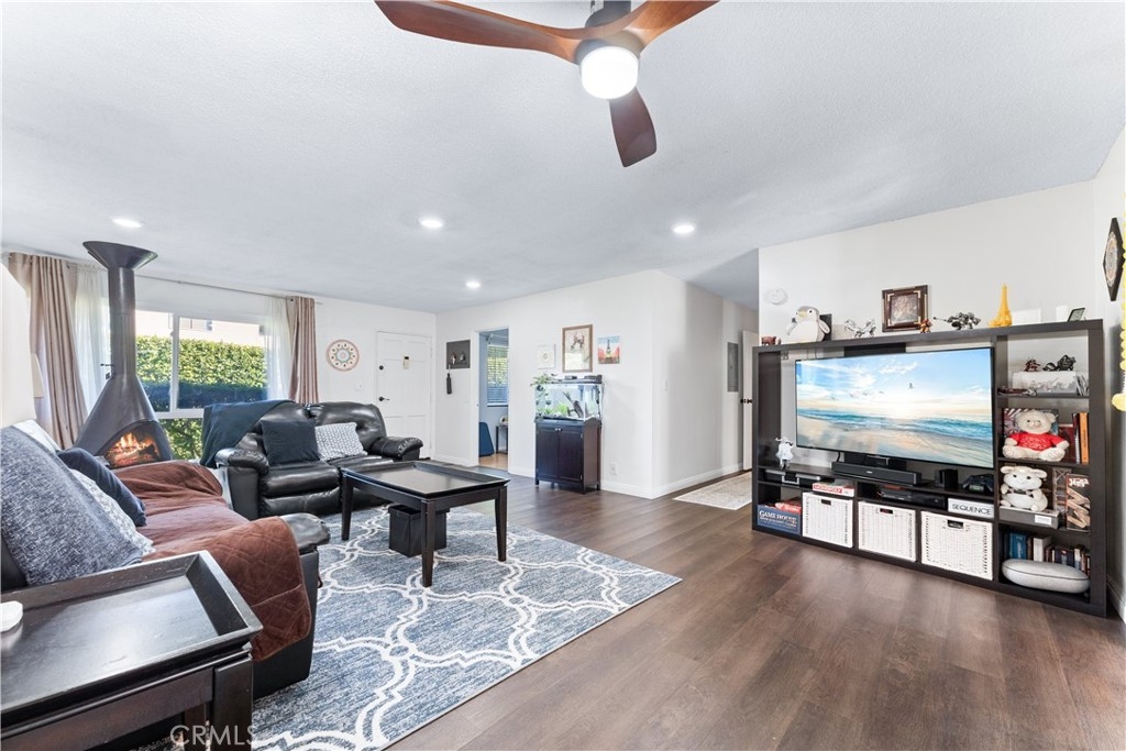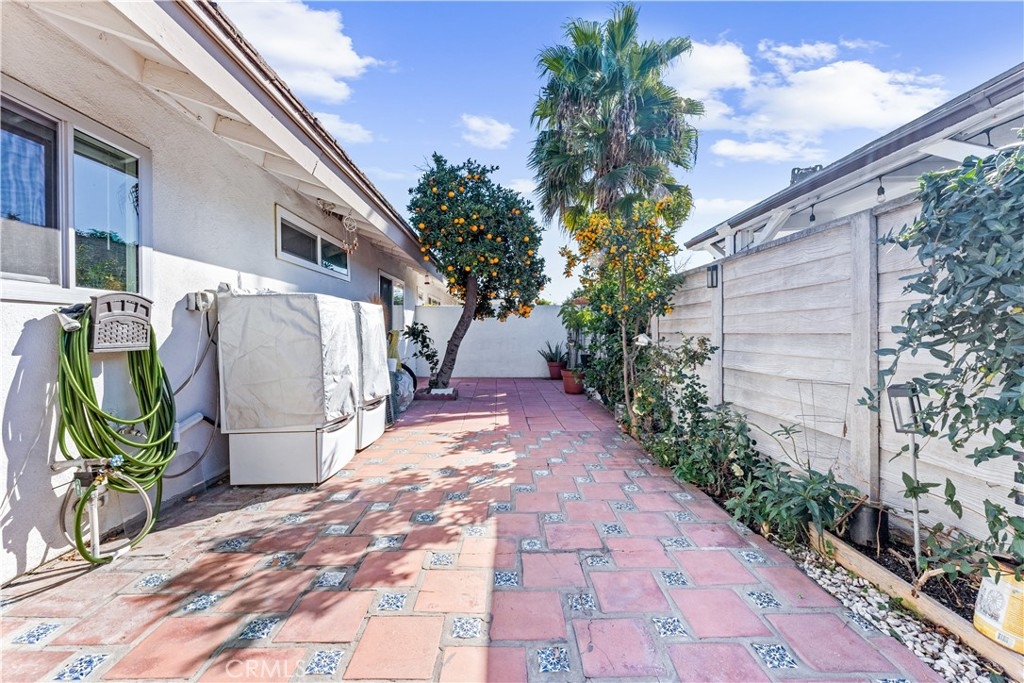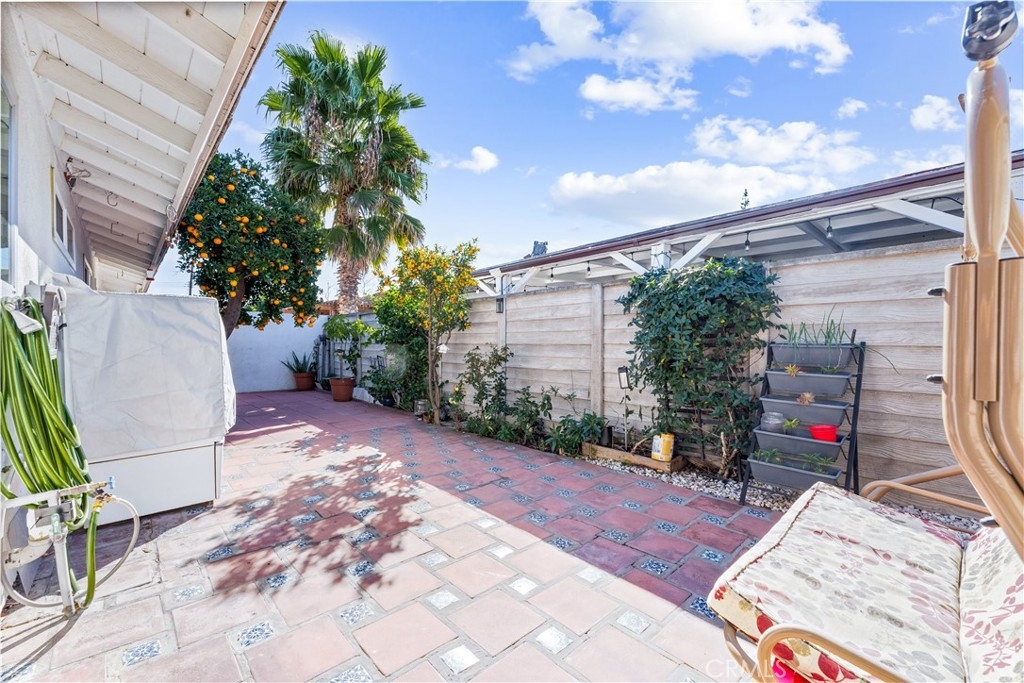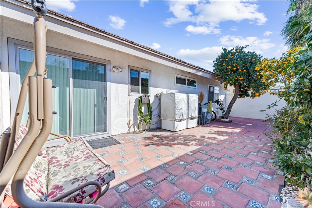 Beautifully upgraded 3 bedroom 2 bath condominium in the heart of Tustin, adorned with spot lighting that bathes every corner in an inviting glow. Indulge in the elegance of tiled countertops and newly painted cabinets that grace the kitchen, while newer laminate flooring flows seamlessly throughout, offering both style and practicality. Step into a world of classic charm within this spacious 3-bedroom single-level haven. Enjoy the convenience of all appliances included – washer, dryer, and stainless steel refrigerator – ensuring that you're perfectly equipped from day one. Nestled within the Sycamore Gardens, homeowners relish the tranquility of open spaces and the shade of mature trees. The community's inviting picnic area, pool, and soothing spa create a haven of relaxation and leisure. A private backyard patio with plenty of space and serene surroundings. With one assigned covered carport space and additional guest parking, your practical needs are well catered to. Revel in the utmost convenience, with easy access to schools, shopping malls, and the 55 and I-5 freeways. Convenience monthly HOA fee encompasses water, trash, landscaping, pool and roof maintenance, as well as pest control. This is more than just a home – it's a lifestyle defined by comfort, convenience, and the allure of Southern California living at its finest.