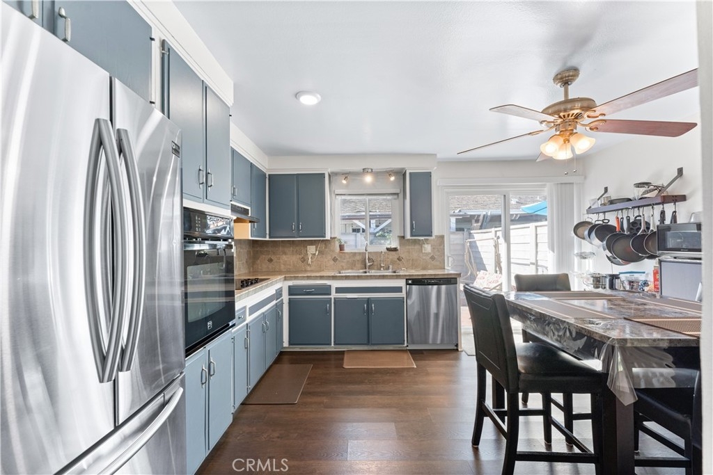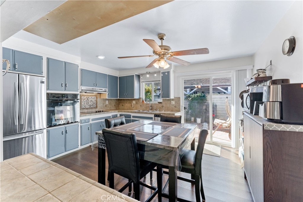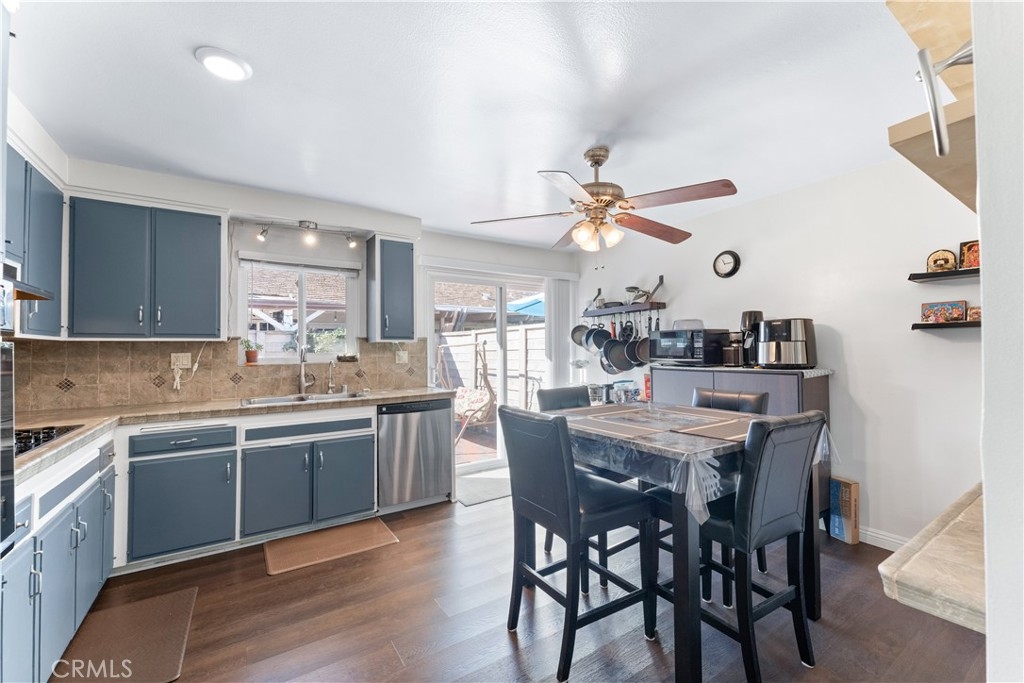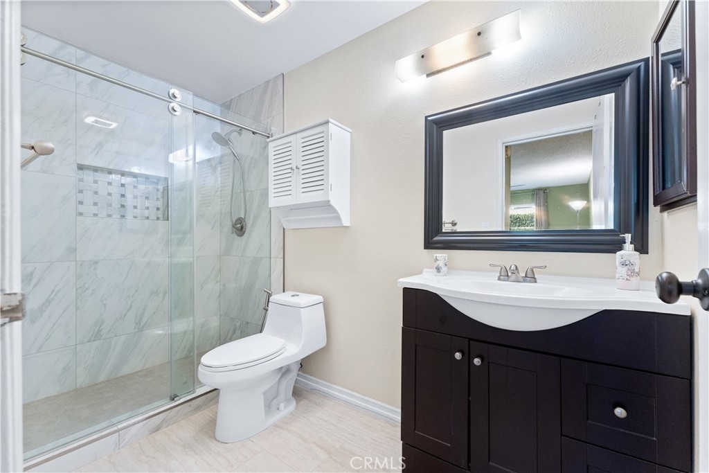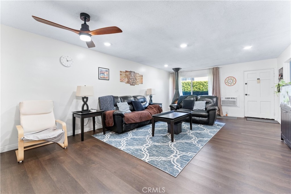 Beautifully upgraded 3 bedroom 2 bath condominium in the heart of Tustin, adorned with spot lighting that bathes every corner in an inviting glow. Indulge in the elegance of tiled countertops and newly painted cabinets that grace the kitchen, while newer laminate flooring flows seamlessly throughout, offering both style and practicality. Step into a world of classic charm within this spacious 3-bedroom single-level haven. Enjoy the convenience of all appliances included – washer, dryer, and stainless steel refrigerator – ensuring that you're perfectly equipped from day one. Nestled within the Sycamore Gardens, homeowners relish the tranquility of open spaces and the shade of mature trees. The community's inviting picnic area, pool, and soothing spa create a haven of relaxation and leisure. A private backyard patio with plenty of space and serene surroundings. With one assigned covered carport space and additional guest parking, your practical needs are well catered to. Revel in the utmost convenience, with easy access to schools, shopping malls, and the 55 and I-5 freeways. Convenience monthly HOA fee encompasses water, trash, landscaping, pool and roof maintenance, as well as pest control. This is more than just a home – it's a lifestyle defined by comfort, convenience, and the allure of Southern California living at its finest.