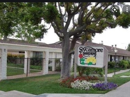*Purchase "As IS" and turn this unit into a beauty. Single level two bedroom, two bathroom, patio unit, is waiting for your decorating and updates! This one story unit has no one above or below you. Private patio with cement and a little grass for your pets or kids to enjoy. The lovely, Sycamore Gardens, complex boasts a giant pool, spa, club house, laundry facility (stackable washer and dryer in the unit too.) There are giant sycamore trees, and green belts through out this quiet and cozy complex. Come home, enter the gated community with your remote, and drive right into your two carports, with plenty of parking and storage. HOA covers all utilites (water, gas, trash; except electricty,) Plus, they take care of recreational facilities, landscape, gates-remotes and codes, roof, building, etc. The house is currently being cleaned out.