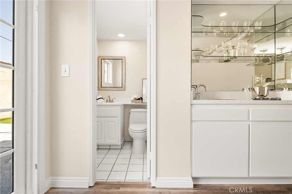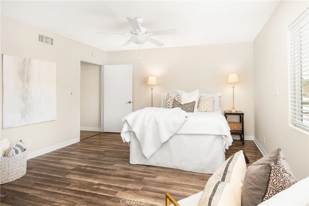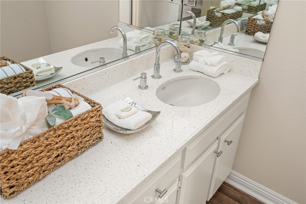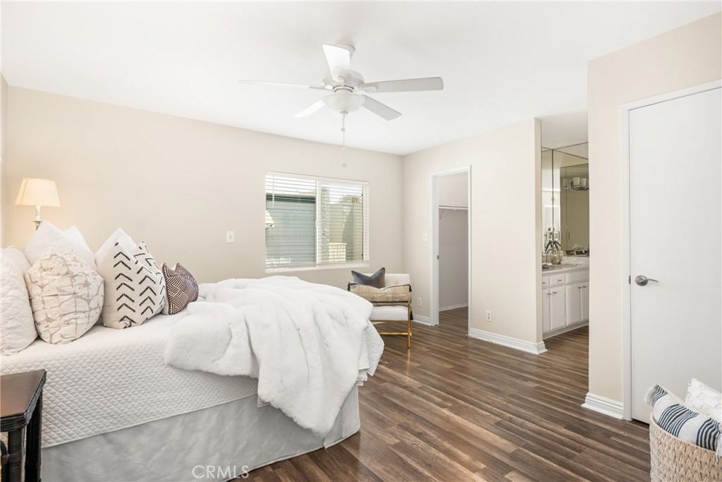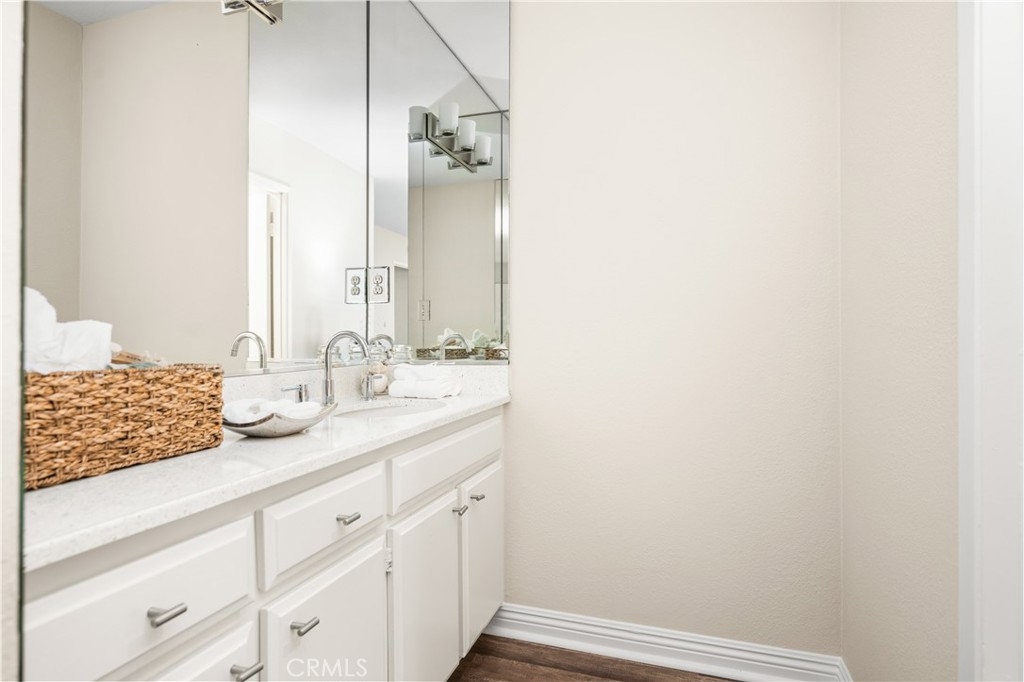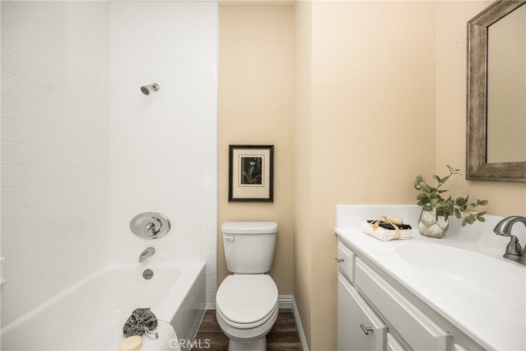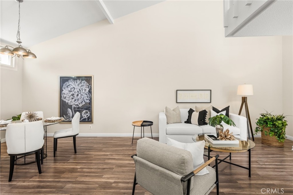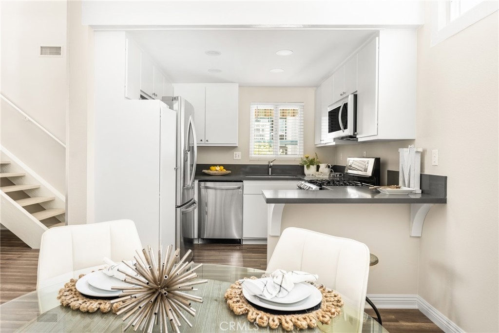 Settle into the good life at Cascadia—an intimate gated enclave in Tustin, the beloved “City of Trees.” Perfectly positioned on the border of North Tustin, this private townhome offers a rare blend of thoughtful space, modern comfort, and easy everyday living. Whether pulling into your attached 2-car garage or using your oversized adjacent third parking spot, your daily routine starts with ease. Inside, soaring cathedral ceilings and a wall of light welcome you into the main living space—an open-concept design that seamlessly blends the living and dining areas for connected living. The warmth of the wood-burning fireplace anchors the room, while generous wall space is ready for your favorite art—or your favorite big screen. The updated kitchen is dialed in for both form and function: quartz countertops with bar seating, stainless steel appliances, single-basin sink, recessed lighting, and freshly painted cabinets. Mornings are made better with the perfect omelet or espresso at your stylish coffee bar/wet bar setup. A guest powder bath on the main level adds function for entertaining. French doors open to a private tropical-inspired patio—complete with plumeria trees, artificial turf, and built-in storage to tuck away garden essentials. Hosting is easy with direct gate access from your third parking spot and plenty of room to dine al fresco, lounge, or BBQ under the stars. Upstairs, a versatile loft offers the ideal flex space for a home office or lounge area. The secondary ensuite bedroom includes an updated bath and a cozy dressing or study nook. The sunlit primary suite offers both a walk-in closet and additional storage, plus a dedicated vanity area that flows into the private walk-in shower and commode. Take advantage of fresh paint, easy-care laminate flooring, and window coverings throughout. The fully finished garage adds even more versatility with laundry hookups and extra storage areas—all with direct home access. Live just minutes from Tustin’s favorite breakfast spots, breweries, shopping, and award-winning Tustin Unified schools. Privacy, possibility, and pride of place—welcome home to Cascadia.