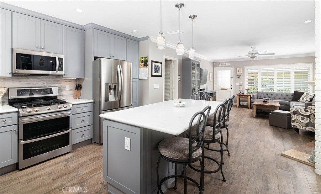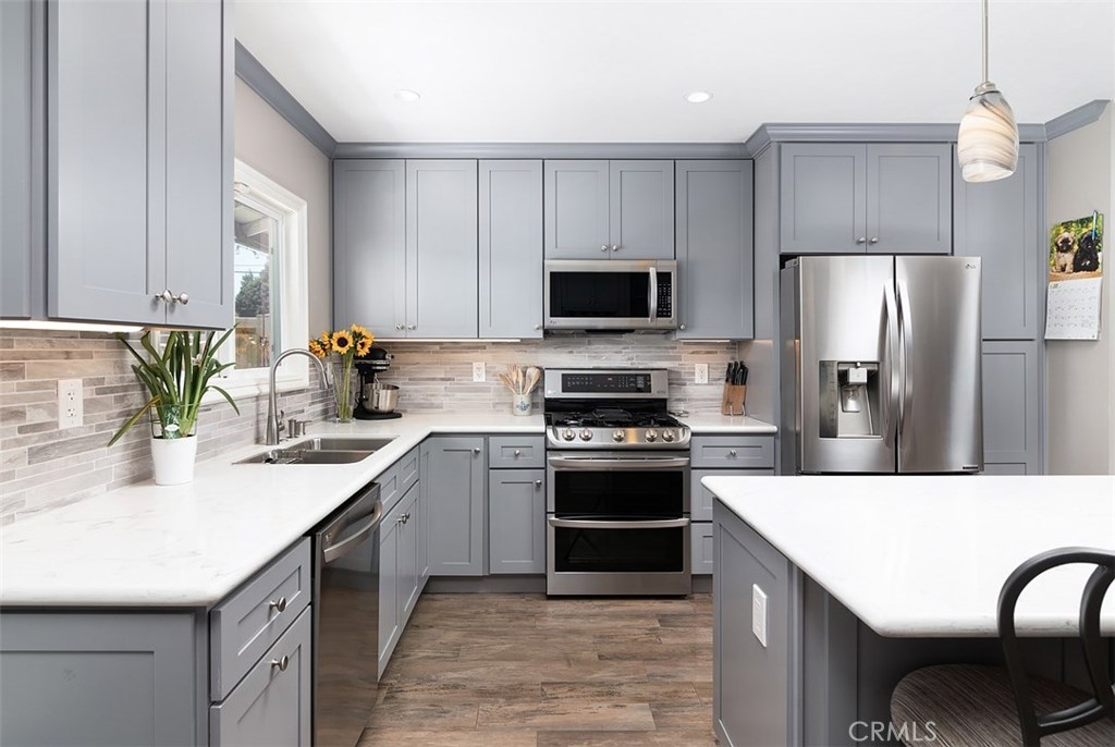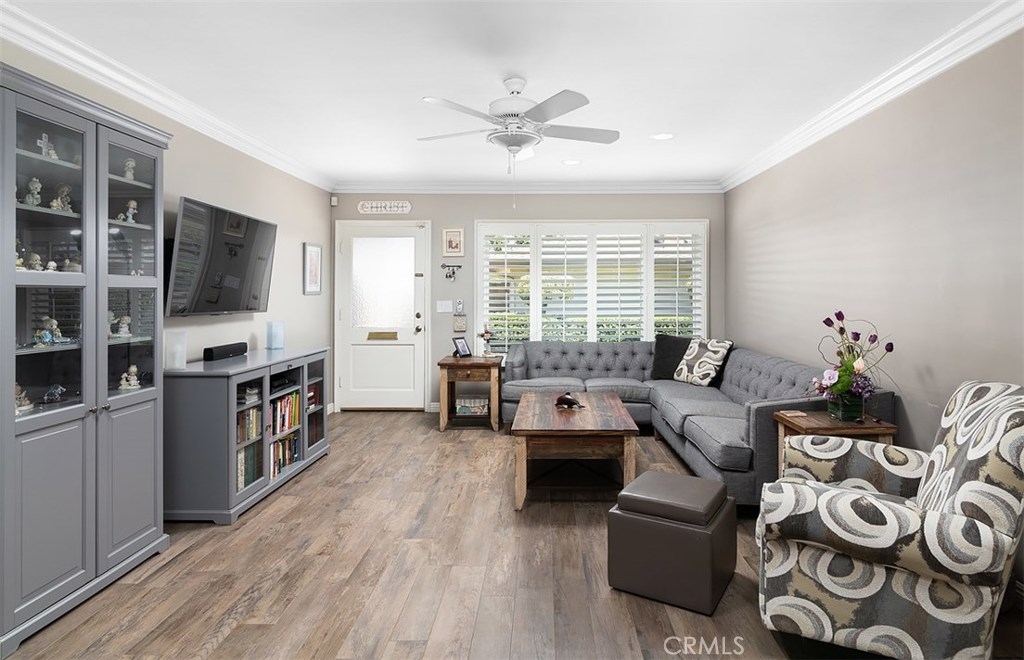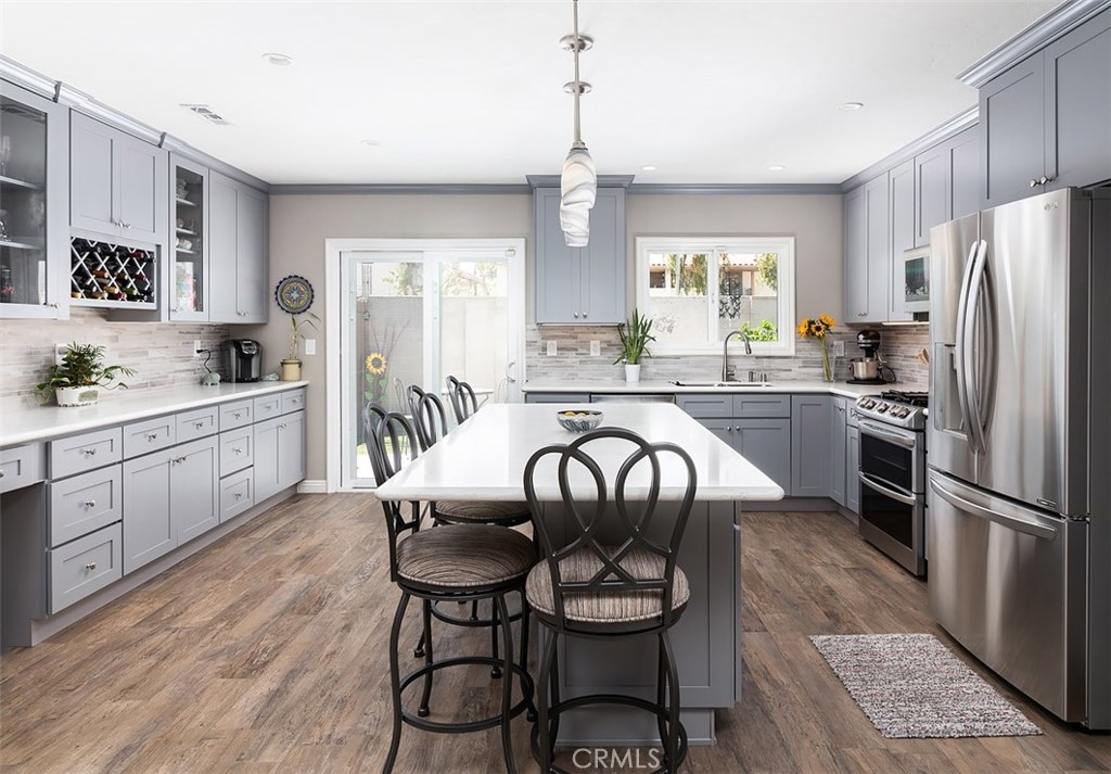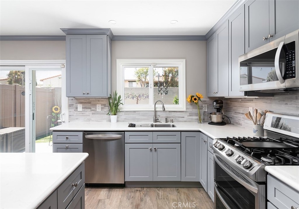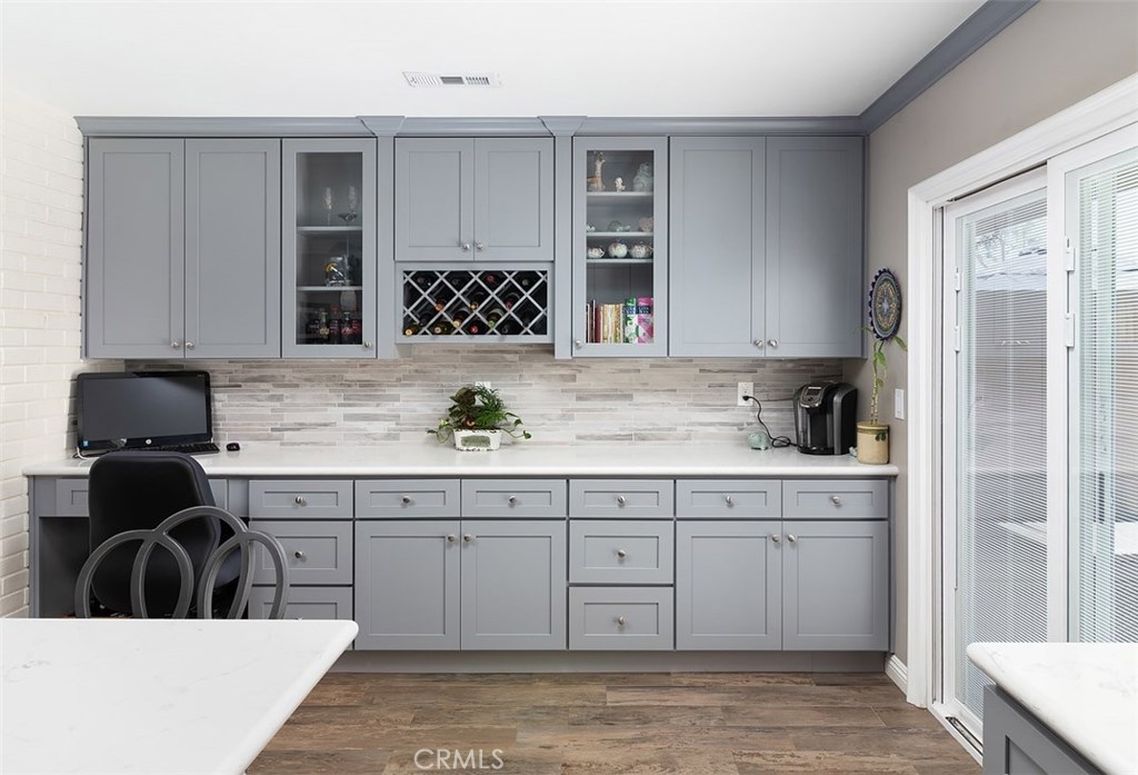**Beautifully open and upgraded kitchen** This highly desirable two bedroom condo is located in the quaint Tree Haven community with 2 association pools and 2 clubhouses. Within the boundaries of outstanding Tustin schools including Foothill High, the home has a bright and spacious living room that is open to the kitchen with extended built in cabinets. Lovely wood inspired tile flooring gives the interior fresh appeal and an enclosed patio makes for great extended living. The property has ample storage space, as well as a one car garage and parking permit for a 2nd car. Laundry is located in the private patio area. Plenty of community parking as well. Enjoy wonderful shopping and dining nearby and close proximity to all freeways, Tustin Marketplace, Old Town Tustin and Old Town Orange.