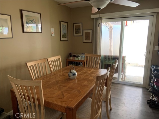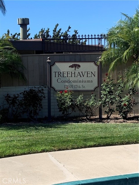 Awesome Treehaven 2 bedroom, 2 bath condo, single story, no one above or below you! This is a very quiet and peaceful home with a large living room that has a floor to ceiling brick fireplace. The living room leads to a nice sized Dining area. The Kitchen is featuring white cabinets and the refrigerator stays. Enter the patio from the dining area that is very spacious and private. Newer wood laminate flooring. Laundry is on the patio and you also have an option of community laundry if you prefer to remove from the patio. The door on patio leads direct to your garage. Inside your home you will go down the hall to the full bath and two bedrooms. The primary bedroom has its' own bathroom with a shower. HVAC system is newer so no expense there! The garage is a shared garage with storage cabinet. Treehaven is a much sought after community that offers two pools. One story incredible value! Easy access to shopping, dining, and freeways!