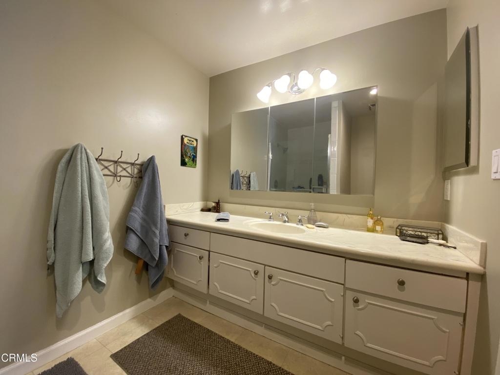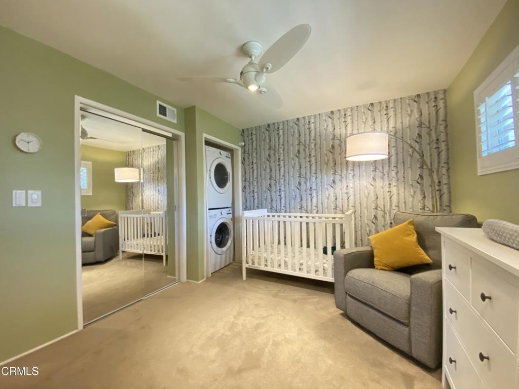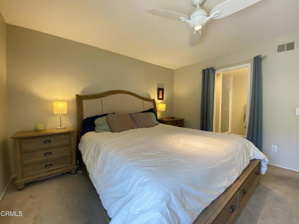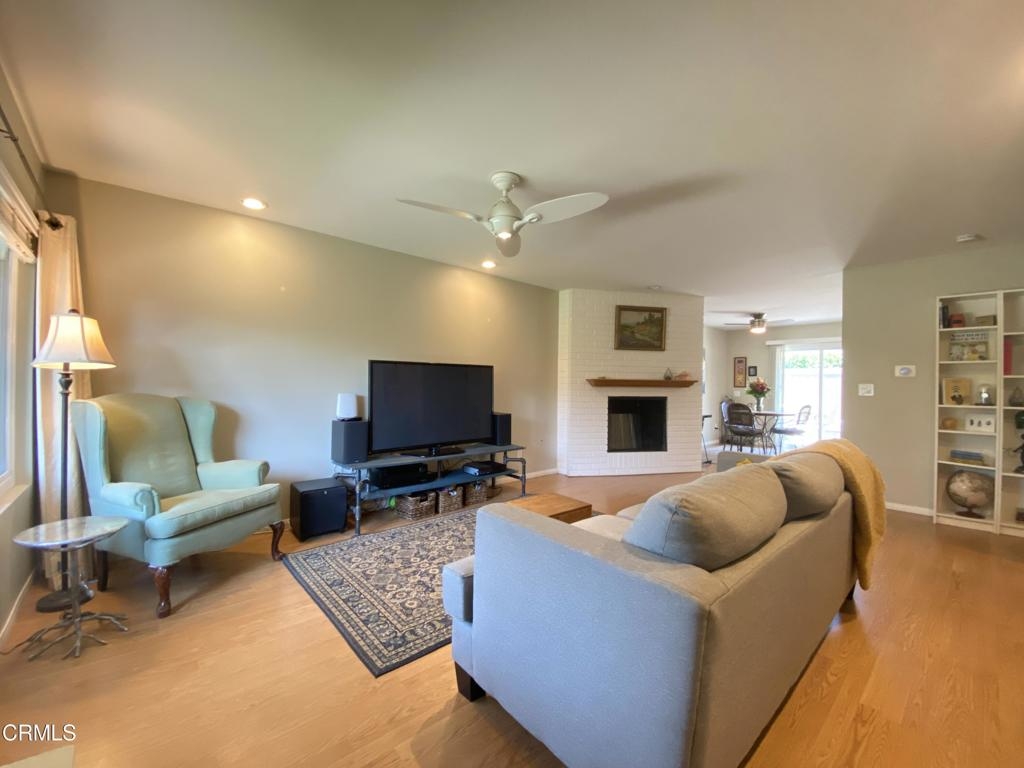 Great two bedroom, two bathroom Tree Haven condo with 1,106 sq. ft. of living space. This home is an end unit in the corner of the complex which provides for a very quiet and peaceful location. A large living room is accented with a white brick, floor to ceiling fireplace with wood mantle and opens into a generous dining and kitchen area. The kitchen features white cabinets with brushed nickel pulls, white tile counters with decorative inlaid and colored tiles, along with a complimenting tile backsplash. Dual-paned vinyl windows throughout. The primary en suite bedroom boasts a large closet with mirrored doors and a sliding door to the rear patio. The second bedroom has a birch tree accent wall, window shutters, mirrored closet doors and a newer stackable LG washer and dryer. Ceiling fans in both bedrooms and living room along with air conditioning and window/door screens allow you to set the comfort level just the way you want. The Tree Haven complex features two pools, just a short distance from your front door. There is also a shared garage with storage cabinets so you can park a vehicle inside too.