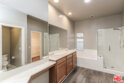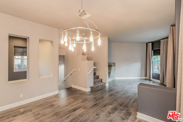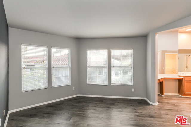 This Tustin two-story townhome offers a den, loft, gas fireplace, stainless steel appliances, kitchen quartz countertops, master bathroom dual sinks, separate tub and shower, and a two-car garage.