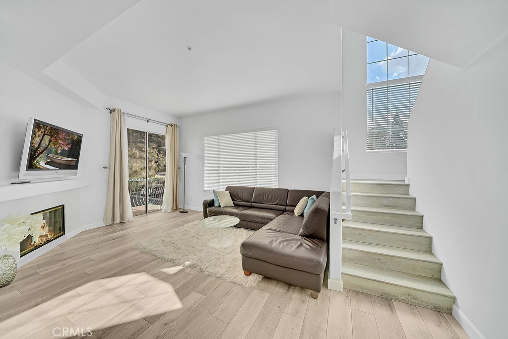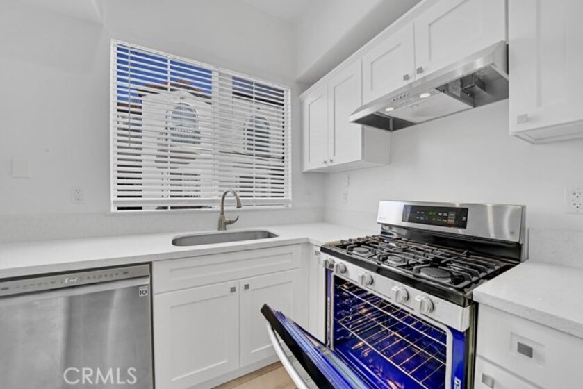 Great corner unit with exceptional natural lighting!! ***Upgrades include elegant wood laminate flooring, enhanced baseboards, mirrored dining wall, and custom lighting*** Upgraded kitchen comes complete with solid stone countertops, stainless steel appliance package including NEW premium LG oven/cooktop, dedicated venting system, and custom hardware *** Private master also comes with upgraded vanity countertop, dual sinks and walk-in closet *** Two-car direct access garage includes epoxy flooring and additional storage room.