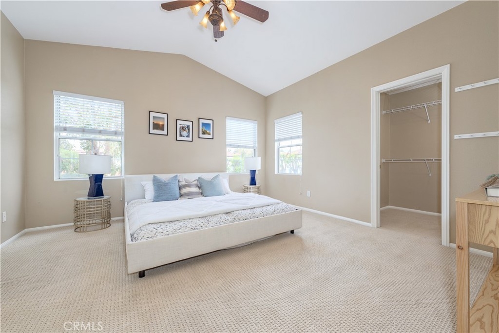 Welcome to this exquisite 2-bedroom, 2.5-bathroom townhome, gracefully nestled in the highly sought-after Tustin Del Verde community in Tustin Ranch. This charming end unit enjoys a prime location adjacent to a stunning resort-style pool, offering an oasis of relaxation right at your doorstep. As you enter, you’ll be greeted by a bright and open ambiance, accentuated by soaring vaulted ceilings that create a sense of spaciousness. Natural light floods the space, streaming through expansive windows that illuminate the home from two sides. The inviting living room features a custom-built entertainment center and a cozy fireplace, harmoniously blending functionality and elegance in one welcoming space. The spacious kitchen features abundant storage, sleek upgraded counters, a chef's sink, and a charming eat-in area that flows seamlessly out to a delightful outdoor balcony. Each of the two master suites serves as a tranquil retreat, complete with its own luxurious en suite bathroom, offering comfort and privacy for residents and guests alike. Convenience is a key feature with a two-car attached garage, which comes with extra overhead storage space, plus ample guest parking just steps away from your front door. Indulge in a variety of resort-style amenities, including a sparkling pool, rejuvenating spa, outdoor entertaining areas, and a picturesque walking path alongside the beautiful Tustin Ranch Golf Course. Just across the street lies the expansive Tustin Sports Park, which offers an array of recreational options, including tennis courts, basketball courts, and fields for baseball and soccer, along with sprawling green spaces for picnicking or leisurely strolls. This remarkable townhome is also located within the esteemed Tustin Unified School District, renowned for its exceptional schools and innovative educational programs. Come experience the perfect blend of comfort, community, and convenience.