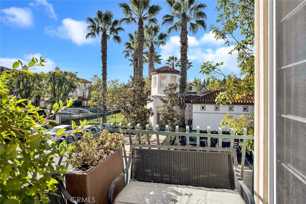 Welcome Home! This lovely 2 bed, 2.5 full baths has 1,190 sqft of living space and is located in the desired Tustin Del Verde Community in Tustin! As you walk up the stairs, you'll notice the open floor plan and the cozy fireplace in the living room where you can enjoy your morning coffee. This home features high ceilings, beautiful laminate wood floors, and lots of natural light. You will love the large master bedroom with double sinks and a walk-in closet. Enjoy the privacy of the second bedrooms en suite bathroom. This community is located near the Tustin Marketplace, great restaurants, the freeway, and highly rated schools.