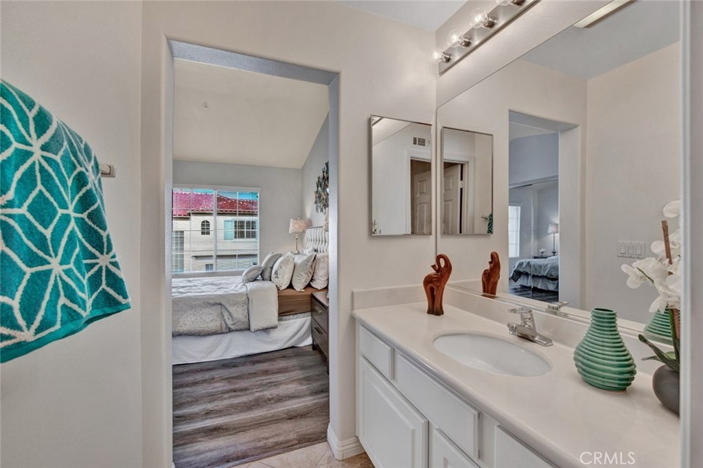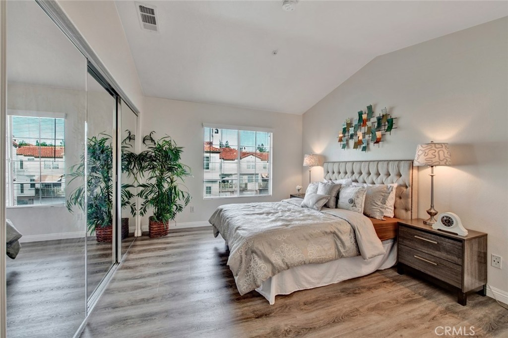 Welcome Home to this popular plan B, Venturanza Del Verde home that has 2 master suite, 2.5 baths, and 1,245 SF of living space! This home features an open floor plan with spacious living room, newer laminate floors, newer interior paint, kitchen that overlooks living space, tons of cabinet space, bright dining room area, vaulted ceilings in the bedrooms, Dual sinks in the master bathroom, walk in shower and tub to relax in. Enjoy a coffee on the private balcony or cozy up by the fireplace after a long day. Park in your 2 car garage with direct access into your private stairway up to the main living space. This home is perfectly located in a great schools, close to shop in the Tustin Market Place, the Tustin Sports Center, Tustin Ranch Golf Course, restaurants and the freeways. You won’t want to miss this opportunity. Come by to see this home today!