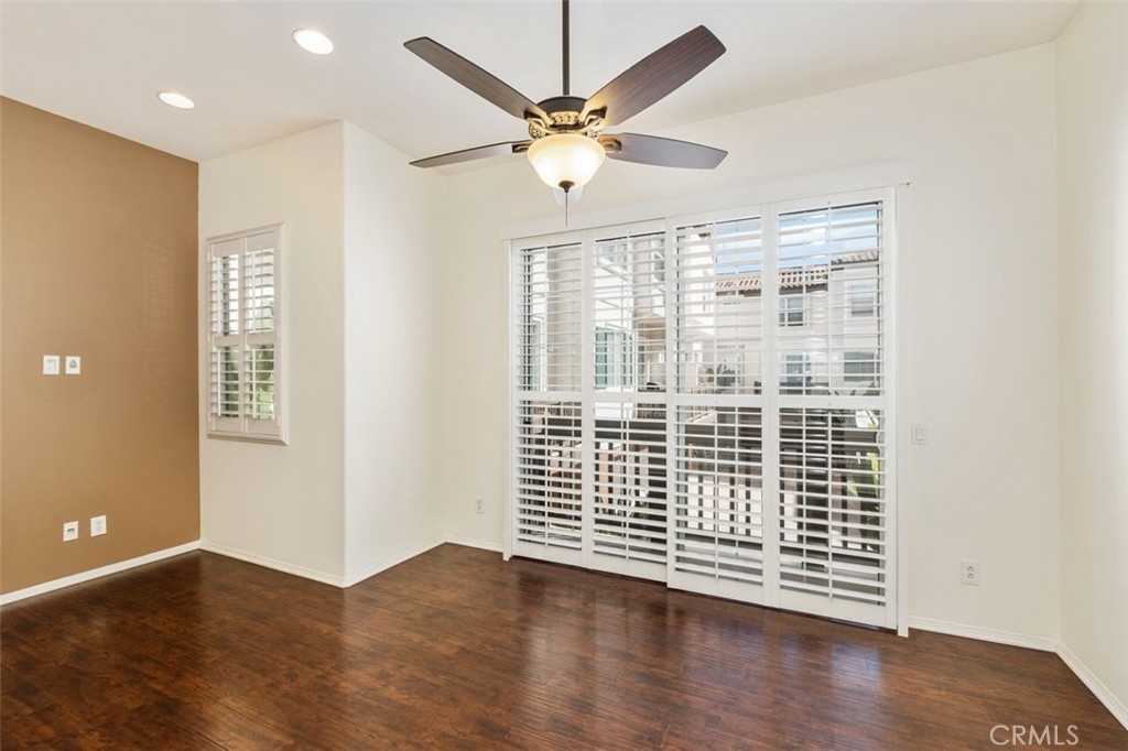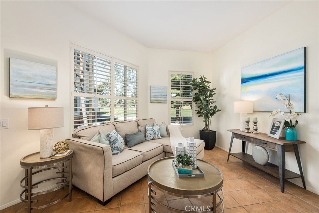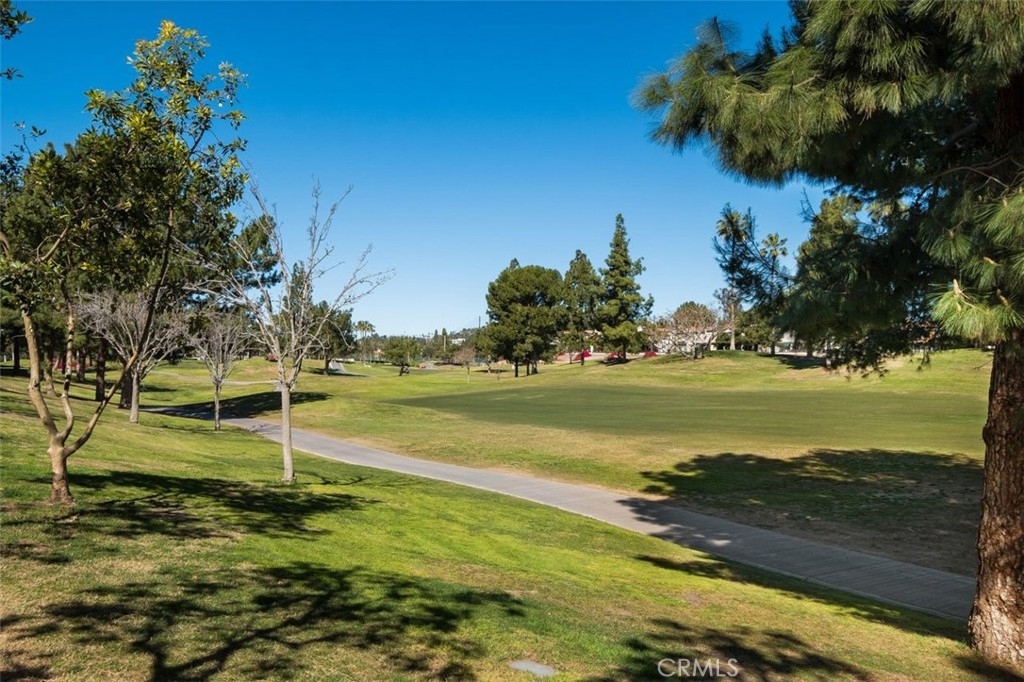 Golf course living in Tustin Del Verde... Welcome home to this beautiful townhouse located DIRECTLY ON THE GOLF COURSE. At almost 1850sqft, this spacious floor plan features tons of upgrades throughout. The living room enjoys serene golf course views and a warm fireplace with stone surround. Tastefully updated, the kitchen features slab granite countertops, soft-close drawers, and tons of storage space. The master suite features tall ceilings, distressed hardwood laminate floors (throughout the entire upstairs), excellent natural light, panoramic golf course views and cool breezes. The master bath includes dual sinks and vanity, a walk-in closet, a shower and separate soaking tub. Spacious secondary bedrooms have large closets and plantation shutters. The lower-level den could be used as a fourth bedroom (or as your personal Peloton space!) This level boasts distressed hardwood laminate floor, laundry area, and a half bath. The 2-car garage offers the convenience of direct access to the home, as well. The nearly-new HVAC system will keep you comfortable year-round. Close to shopping, schools, transportation, and everywhere you want to be. The property enjoys low association dues, a low-low tax rate, and is served by some of Tustin's finest schools. Come see this property now!