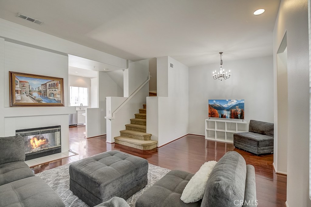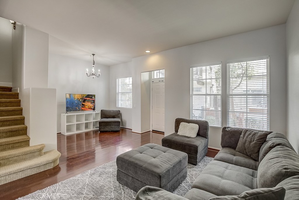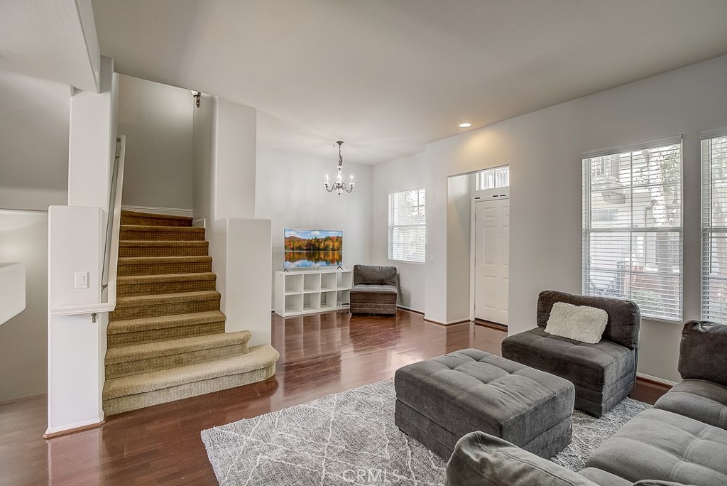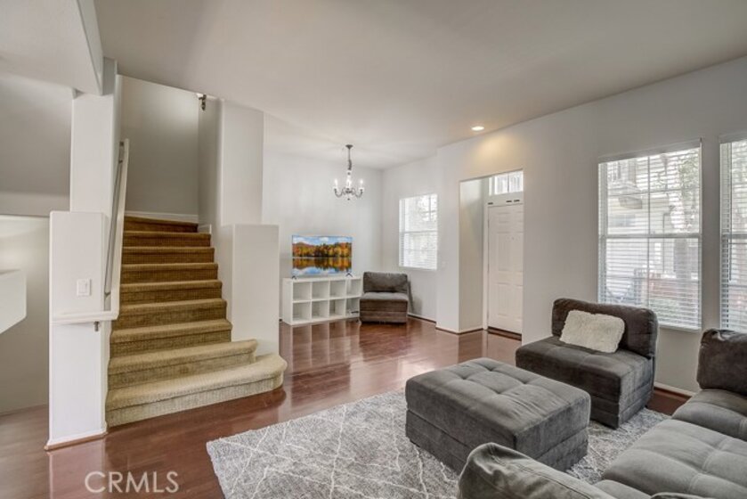Welcome to 2878 Player Ln, a well maintained and updated tri-level home, located in the highly sought after community of Tustin Del Verde. This amazing property features three levels of living with the main level containing an open floor plan with neutral paint and trim, a cozy fireplace, and durable hardwood flooring throughout. Large windows bask the home in an abundance of natural light. A beautifully appointed kitchen features recessed lighting, quartz counter tops with subway tile back splash, stainless steel appliances, and crisp white cabinetry. On the lower level, there is a huge bonus room which can be used as a bedroom/den/office and also features a half bath powder room. The remaining bedrooms are located upstairs from the main living area, including the spacious master suite offering dual mirrored closet doors, its own private balcony and en-suite bathroom. Down the hallway you have the remaining two bedrooms, a linen closet and hallway bathroom with a shower over tub feature. Outdoor living extends to dual balconies, one off the living room and one off the master suite. Parking is easy with a two car garage with direct access along with the washer and dryer hookups there as well. Great community amenities include a sparkling pool, spa, and playground. The Tustin del Verde is conveniently located near the Tustin Ranch Marketplace, 5 & 55 freeways, community parks, golf amenities, plus so much more. Don’t let this opportunity pass you by.