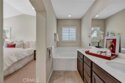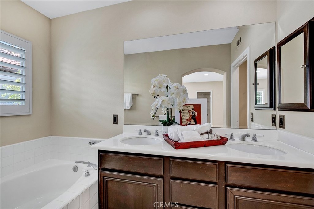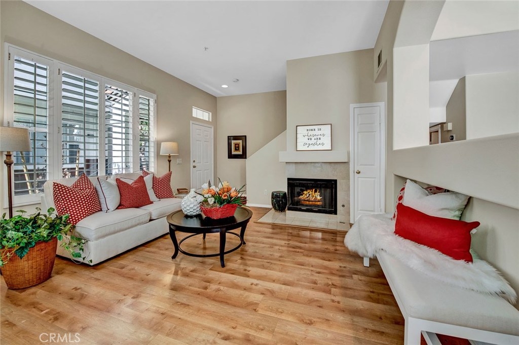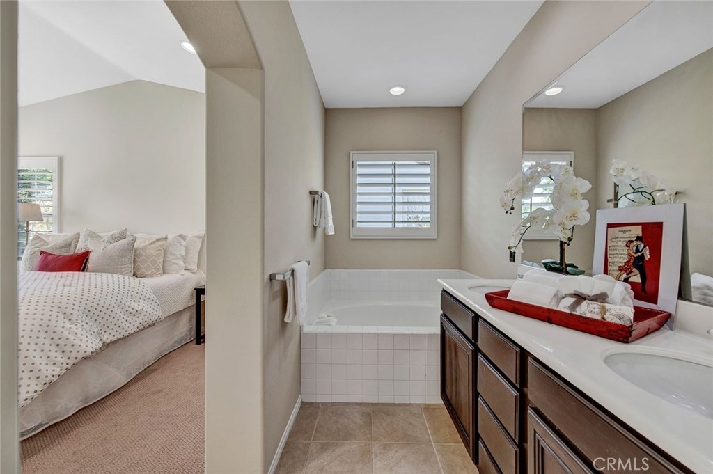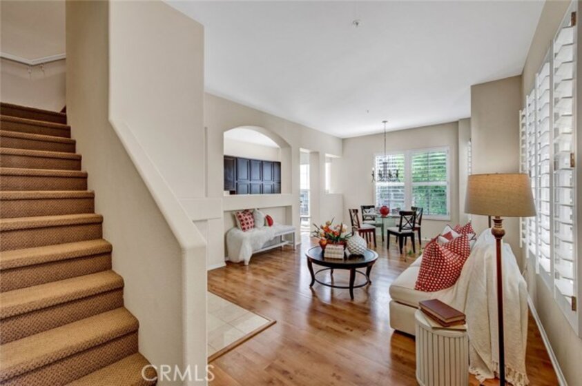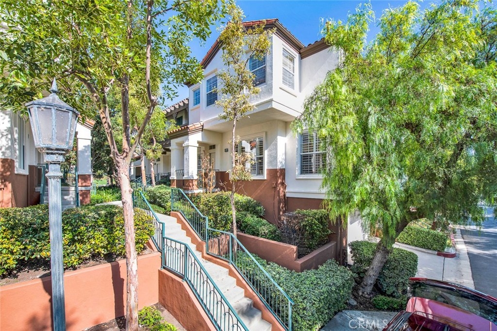 Beautiful, end-unit townhome adjacent to the Tustin Ranch Golf Course in the highly desirable community of Tustin del Verde with Mediterranean, resort style living. Open concept floor-plan with tall ceilings, great architectural detail. Large living room is light and bright with fireplace. Kitchen offers newer stainless-steel appliances with gas stove, built-in microwave and dishwasher with white tile countertops. Breakfast nook off kitchen opens to balcony. Upstairs bedrooms are ample with designer carpet and ensuite bathrooms. Large master with vaulted ceilings, walk-in closet, ensuite with sunken tub, double sink, vanity, and shower. 2nd bedroom has double door entry, large mirrored wardrobe ensuite shower/tub. 2 car garage with laundry and direct access. Recently remodeled pool and spa are just steps away. Award-winning school district: Tustin Ranch Elementary, Pioneer Middle School and Beckman High. Conveniently located to shopping and freeways.