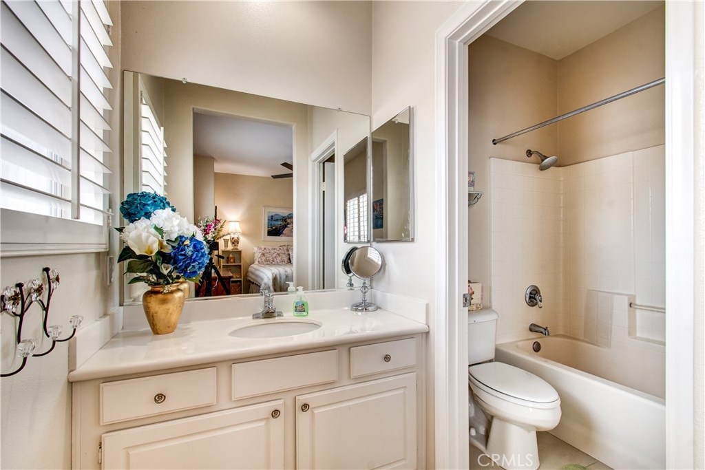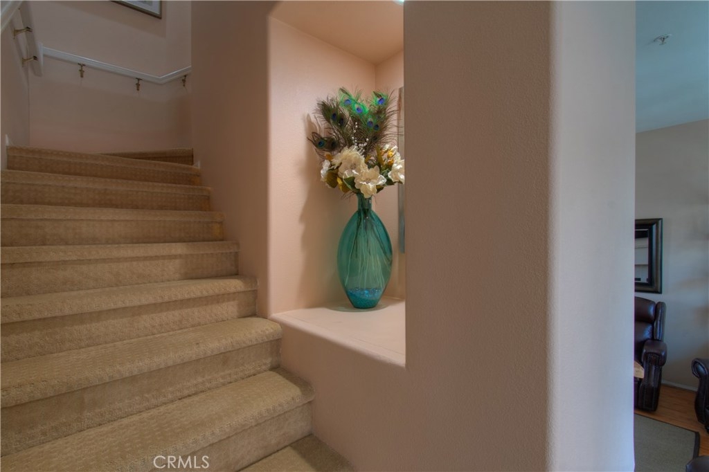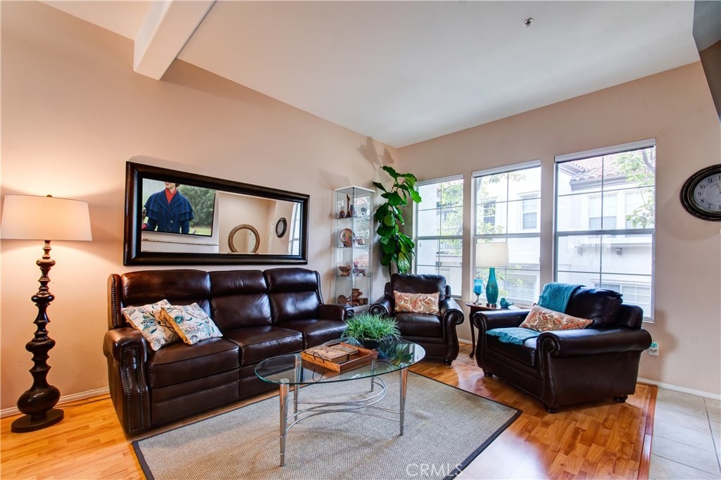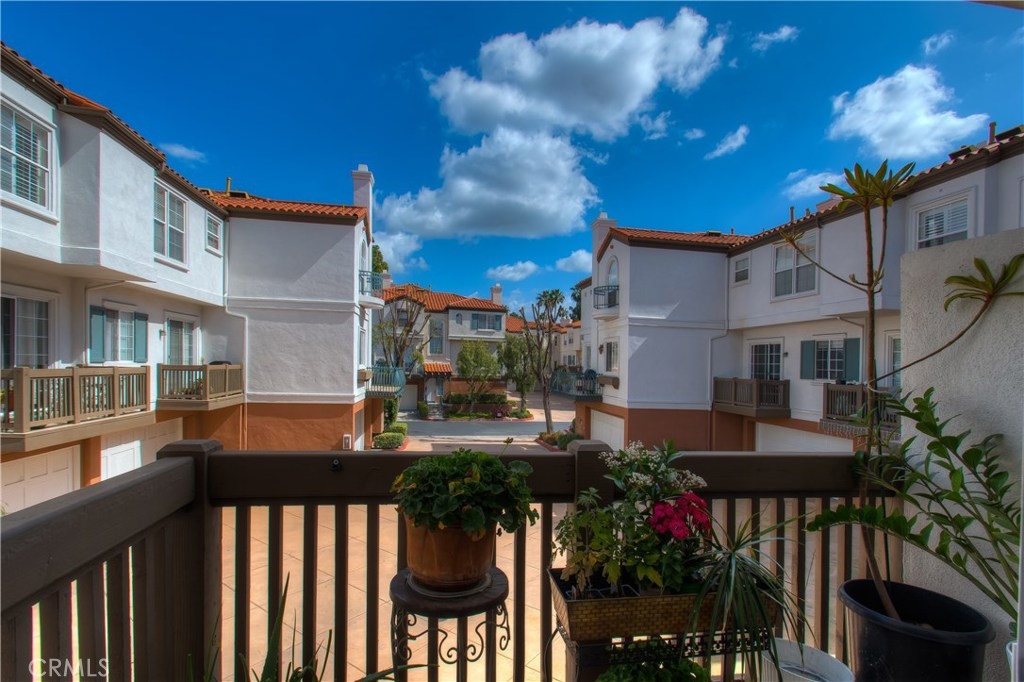 Welcome to Tustin Ranch and the gorgeous Venturanza Community. This home is perfectly situated in an interior location giving you tons of privacy and tranquility. The living room welcomes guest with the oversized windows to enjoy the beauty of the outdoors. The living room is well appointed with a fireplace a laminate floors. Hosts quaint sit down dinners in the dining area. The cheerful kitchen is equipped with warm toned granite counters and backsplash, new stainless steel appliances and another eating area. Enjoy weekend BBQ's right from your private balcony off the kitchen. Fantastic floor plan with a separate den area. This unique space is perfect for relaxing, studying, or just to be used for some extra space. 2 Well appointed bedrooms upstairs are dual master suites both with a walk in closet. One of the master suites boasts a oval soaking tub and separate shower. Enjoy nice touches throughout including plantation shutters, neutral toned paint, ceiling fans and more. Fabulous community with lush landscaping and has a pool and spa. Just minutes from Tustin Sports Complex, Tustin Ranch Golf, and the Marketplace. This ideal location is perfectly convenient for every lifestyle and has access to award winning schools.