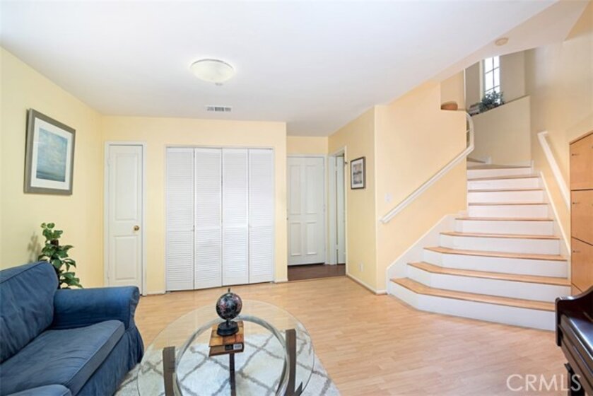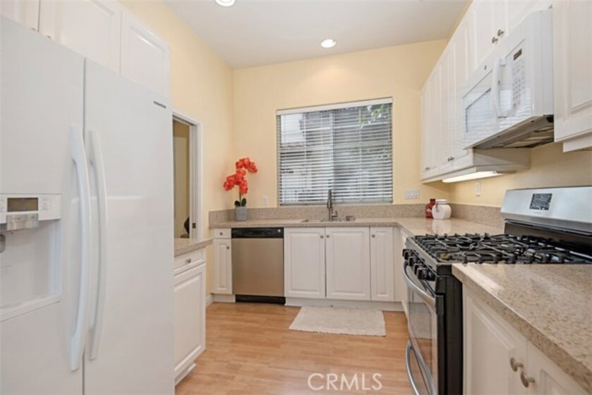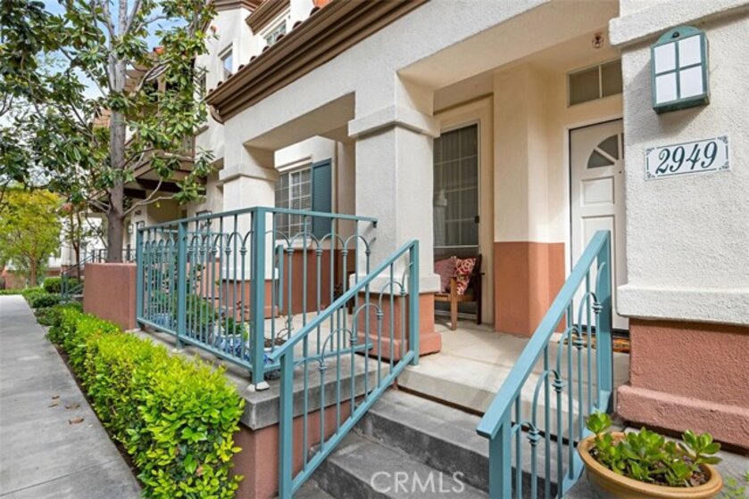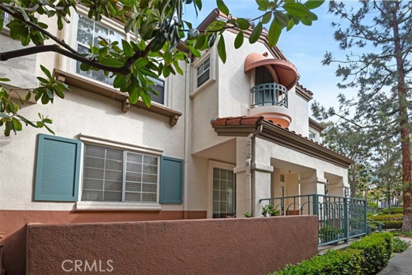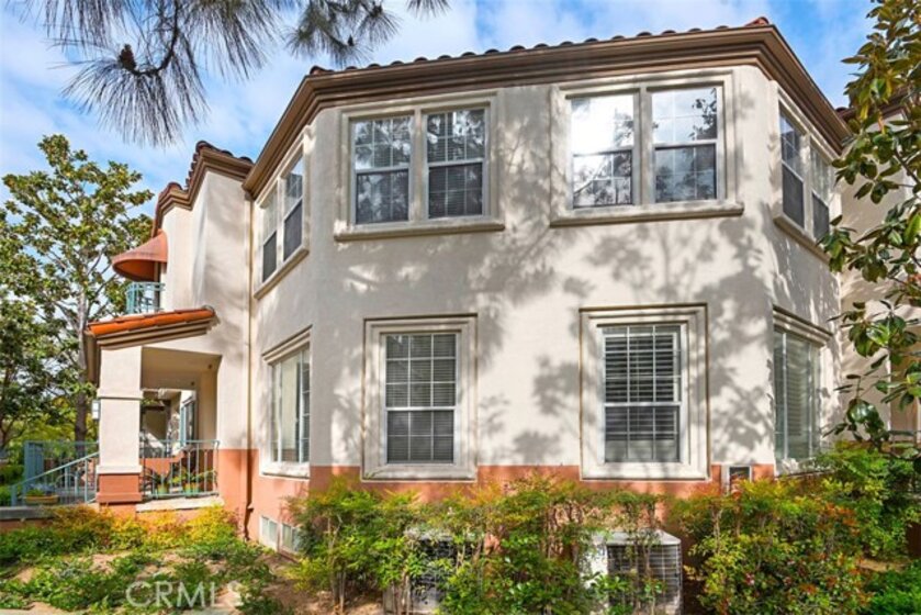Mediterranean townhome in master planned community of Venturanza Del Verde is distinct with arch windows, doorways and red tiled roof. Large front patio steps down to a separate area perfect for entertaining or relaxing outdoors. This multi level floor plan is the largest in the community with 3 bed, 2.5 bath PLUS a BONUS ROOM. Enter into a bright living room with a modern fireplace, a spacious dining area and a family room with access to covered private balcony on the main level. Adjacent to the dining is the gourmet kitchen with stainless details, new stove, granite countertop and ample white cabinets for storage. The master suite has 2 closets, make up vanity area, dual sinks, soaking tub and new upgraded shower. The remaining 2 secondary rooms are oversized with plush carpet. Convenient laundry room and attached 2 car garage. Just steps away, enjoy the resort like amenities of a beautiful pool and secluded spa. Connect with nature at nearby trails, walk across the street to the Tustin Sports Park or play a round of golf at the Tustin Golf Club. Attend award winning schools in this golf community of Tustin Ranch.