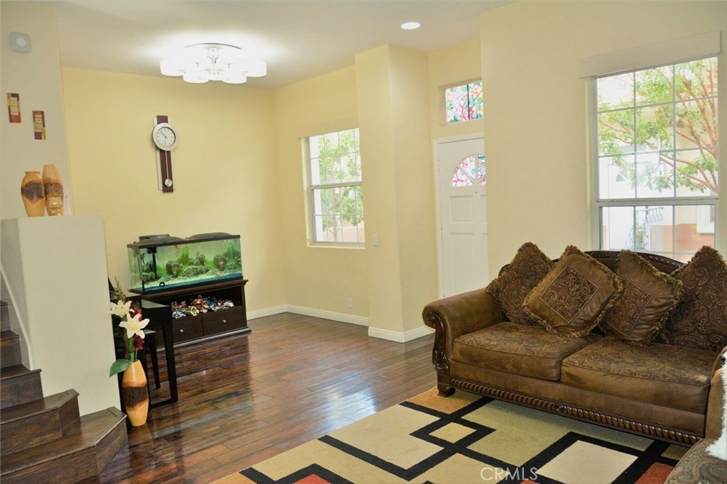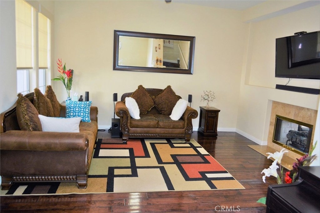 Gorgeous! large, turn-key townhouse/condo in the upscale neighborhood community of Tustin/Tustin Ranch. The HOA is HUD approved for FHA/hecm loans. This beautiful townhome is a turn-key ready for move-in. The property is across the street from the Tustin Sports Park and near the Tustin Marketplace. 3 bedroom, 2.5 baths, plus bonus room that could be used as a 4th bedroom, office, or den. Great room with vaulted ceilings over 10 ft, dining room, and gourmet kitchen with granite and luxury wood flooring. Large bedrooms with vaulted ceilings and a master suite with rain walk in shower. Great floor plan with stone fireplace that faces both the living room and dining room. Private rear entry garage and unique quite location away from the main entrance to the complex. No mello roos and HOA includes water & trash. Home is within Tustin School District, nearby Pioneer Elementary, & the (TMA) Tustin Memorial Gate & Magnet school -lottery.