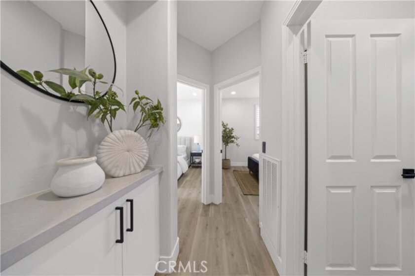 Welcome to this fully remodeled DETACHED condo with a rare oversized backyard and 2-car driveway in the highly sought-after Tustin Field community, located within the award-winning Irvine Unified School District. Situated on a private end-unit with no rear neighbors, this home offers exceptional privacy and an open, light-filled floor plan. Featuring over $120,000 in upgrades, highlights include Pergo water-resistant flooring, recessed lighting, plantation shutters, and designer finishes throughout. The modern kitchen boasts quartz countertops with waterfall edge, full backsplash, Samsung stainless steel appliances, and a walk-in pantry. Both bathrooms are fully remodeled, and the spacious primary suite offers a spa-like retreat with a freestanding tub, walk-in shower, and custom closet. The expansive backyard—an uncommon find—provides ideal space for entertaining and outdoor living, with seamless indoor-outdoor flow through dual French doors. Additional features include custom closet organizers, sound-insulated windows, and a 2-car garage with driveway parking. Enjoy community amenities including pool, park, BBQ areas, and trails, all conveniently located near Tustin Marketplace, The District, and major freeways.