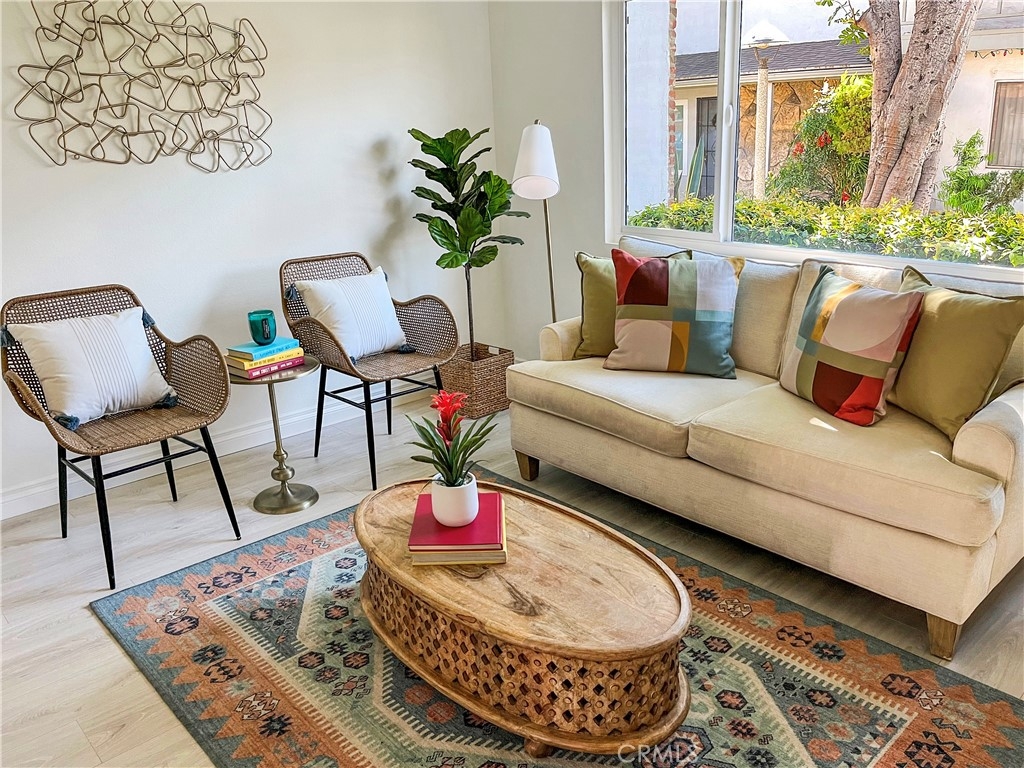 BACK ON THE MARKET! Located in the lovely community of Tustin Imperial, this beautiful 3 bedroom,3 bath condo has been completely refreshed with new water resistant laminate floors, designer paint and new dual paned energy efficient windows. Getting ready for summer, the seller has just installed a brand new HVAC SYSTEM COMPLETE WITH AC,HEATER AND DUCTWORK! The living room and kitchen have new recessed lights as well. Cooking will be easy with a recently installed stainless Microwave as well as a new range/oven . All the bedrooms have updated ceiling fans and mirrored closet doors. Brand new Panasonic WhisperChoice Exhaust fans are in 2 bathrooms. The whole house is protected by the Blink security system. Imagine a condo with not 1, but 3 parking spaces: a 1 car attached garage, 1 carport and 1 community parking space! Exiting through French doors in the kitchen, the private back patio is a great spot to relax and enjoy the sun or perhaps have a family BBQ. The community features 2 pools, a clubhouse, playground & basketball/sports court. With its great centralized location Tustin Imperial is close to shopping , local eateries and the elementary school is just down the street. There is easy access to the 5 and 55 FWY too! Don't miss this opportunity to own a 3 bedroom home with 3 parking spaces and all at a great value.