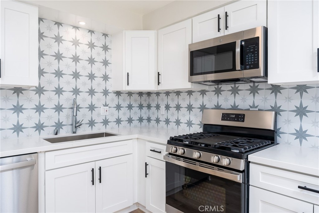 Don’t miss this stunning, turnkey property in the highly desirable city of Tustin! This 4-bedroom, 2.5-bathroom townhouse has been pristinely remodeled and is completely move-in ready. Upon entering, you will find updated wood vinyl plank flooring that leads to the sizable living room that is neutral enough to match any décor. The beautiful kitchen boasts white shaker cabinetry, quartz countertops, a huge farmhouse sink, modern black hardware, and showstopping tile backsplash. The newer dual pane slider leads out to the private patio where you can sip your morning coffee or entertain friends while dining al fresco. All three bathrooms are immaculate and have been updated with new vanities, counters, and mirrors, and the spacious master bathroom is framed by a gorgeous barndoor for a modern farmhouse feel. Upstairs, you will find new ceiling fans and fresh carpet in the light and bright bedrooms. This unit also comes with an attached one car garage and designated parking space. Other upgrades include recessed lighting, new vinyl dual pane windows throughout, and enclosed washer and dryer hookups in the kitchen. Unlimited use of the pools, clubhouse, sports courts, and plenty of guest parking are just some of the perks of living in this community. Located in the highly rated Tustin School District and close to great shopping and dining at the Marketplace, this property truly has it all!
