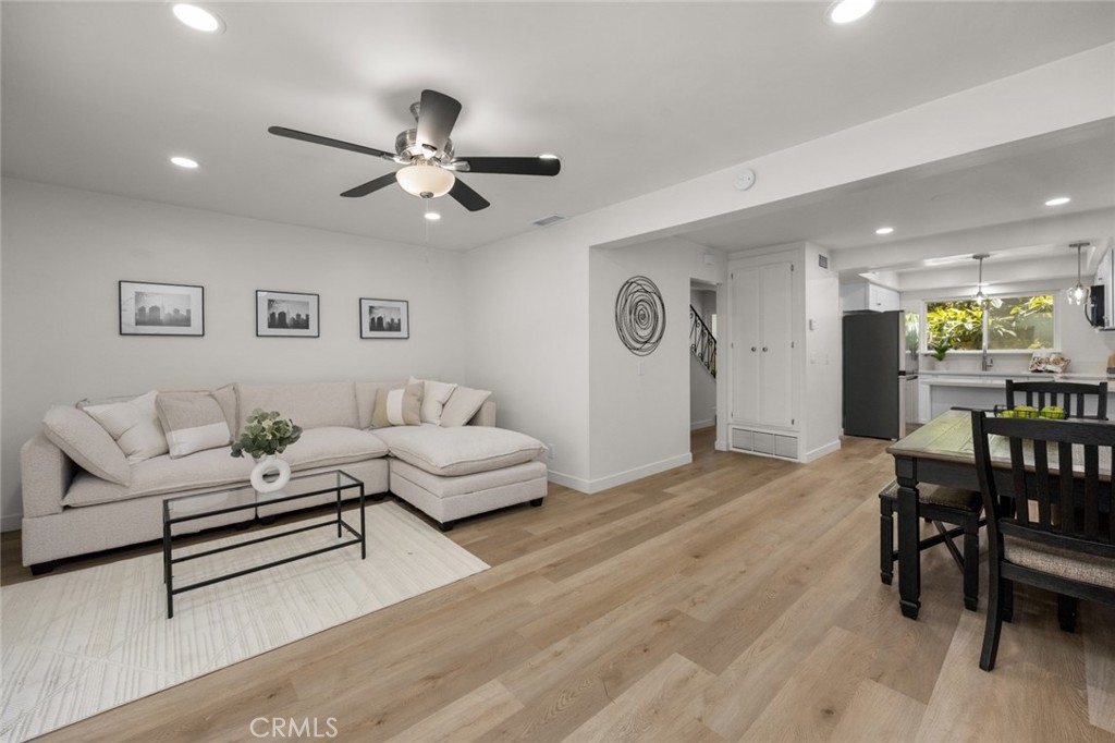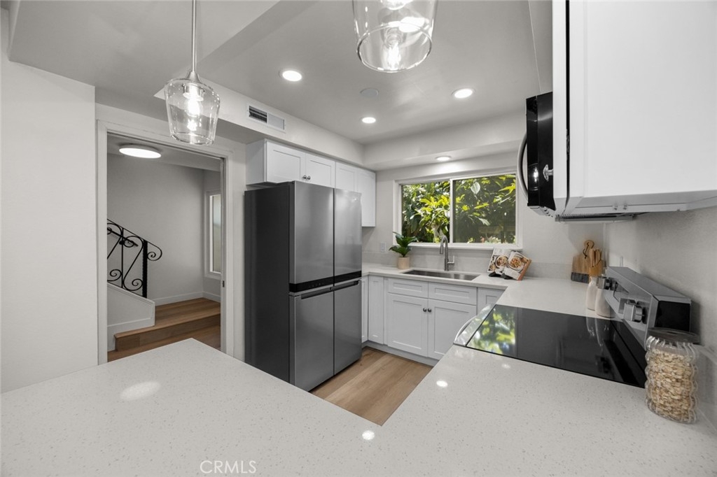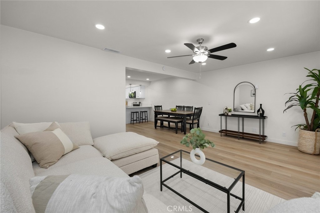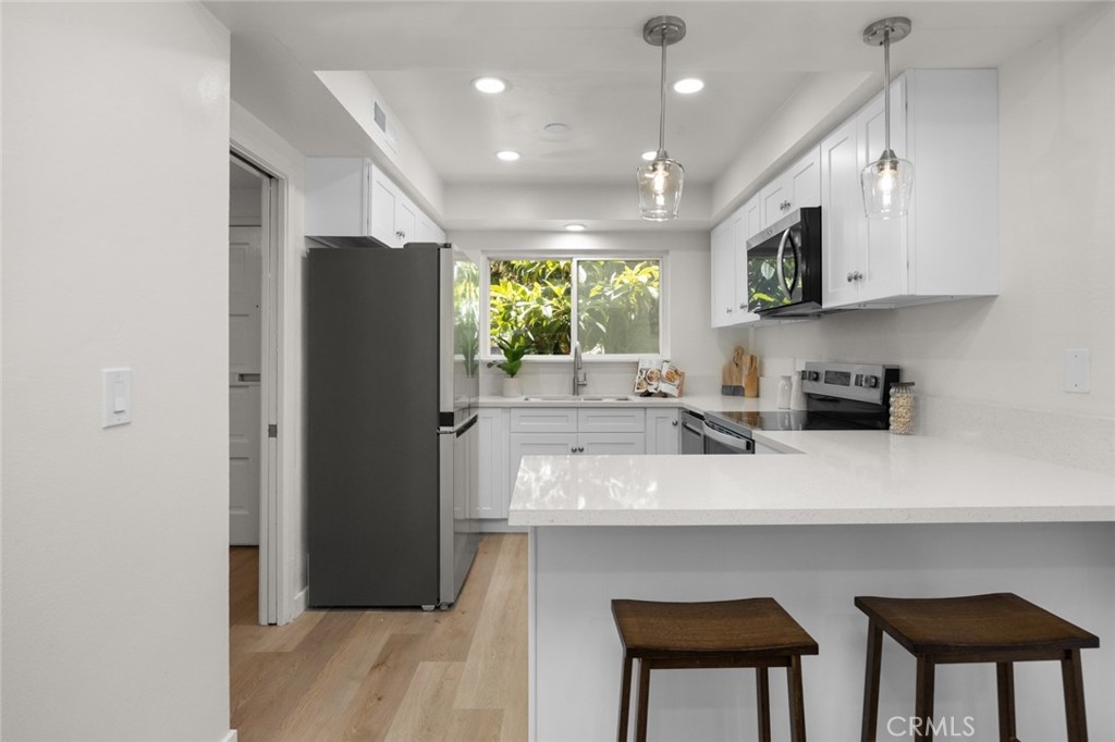 Welcome to this beautifully renovated Condo in the heart of Tustin! This 2-bedroom, 1.5-bath residence has been completely upgraded from top to bottom with no expense spared — everything is brand new, making it truly move-in ready and show like a model. Step inside to a modern open layout featuring new flooring, recessed lighting, new ceiling fans, and all-new fixtures throughout. The fully updated kitchen boasts quartz countertops, brand-new stainless steel appliances including a stove, microwave, dishwasher, and refrigerator, and stylish new cabinetry — perfect for everyday living and entertaining. Enjoy comfort and efficiency with a new central AC system, new dual-pane sliding and front windows, and a brand-new roof (installed by the HOA just one month ago). The bathrooms have been completely redone with a new tub, new shower, and matching quartz countertops for a sleek, consistent look. Step outside to your own private enclosed patio — ideal for entertaining or relaxing in peace. Additional conveniences include one enclosed garage space, an additional parking permit, and access to the community laundry room. The community offers a sparkling pool, lush landscaped grounds, and HOA covered amenities that include trash, sewer, water, and front yard maintenance — providing easy and low-maintenance living. Located in a prime Tustin location, this home is near Frontier Park, The District, Tustin Marketplace, shopping, dining, and entertainment. With easy freeway access, everything you need is right at your fingertips. Don't miss this rare opportunity to own a fully turnkey home in one of Orange County’s most desirable neighborhoods!