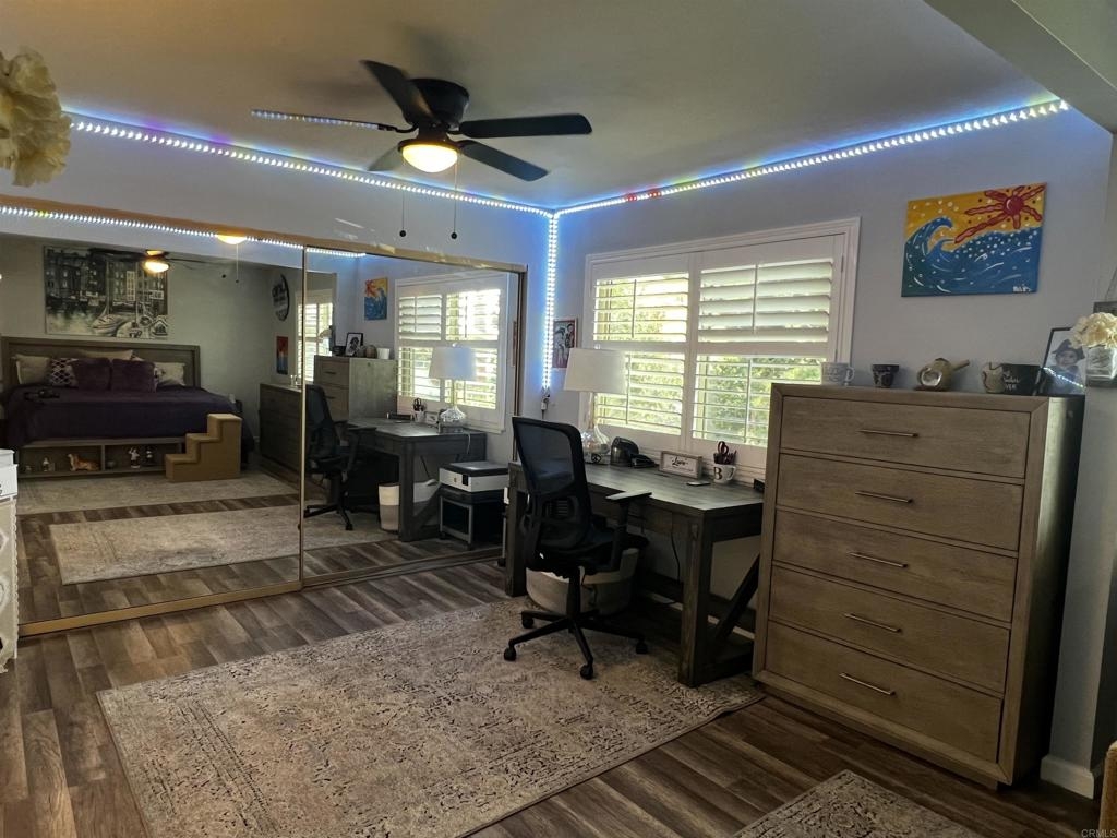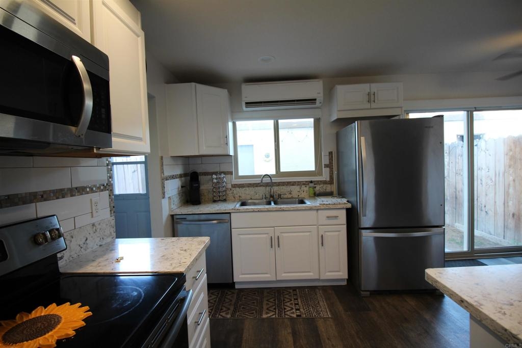 Lovely updated 3 bedroom, 2.5 bathroom townhome boasting 1,392 sqft of living space with an attached 2 car garage. Wood flooring through out and ceramic tile in the living room. Kitchen and bathroom counters with engineered quartz. Laundry room inside unit with dedicated room/space. Generous enclosed patio between home and garage gives private area to enjoy meals al fresco, a space to explore your green thumb, or barbecue all year round. Other features include AC throughout the two-story unit, updated electrical panel and piping at bathroom sink, newer water heater, newer garage door, newer stainless steel dishwasher, and wooden shutter treatments both floors. Master bedroom expanded to create an oversized bedroom with retreat area and bath en suite. Sizable secondary bedrooms with wall closets for organization. Complex has a gorgeous pool and clubhouse; property maintained lush with greenbelt and trees. Near all convenience items: market, shopping, eating, entertainment, and freeway.