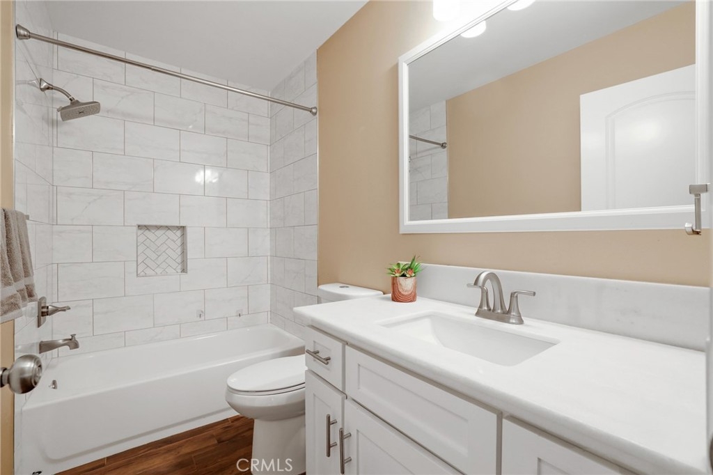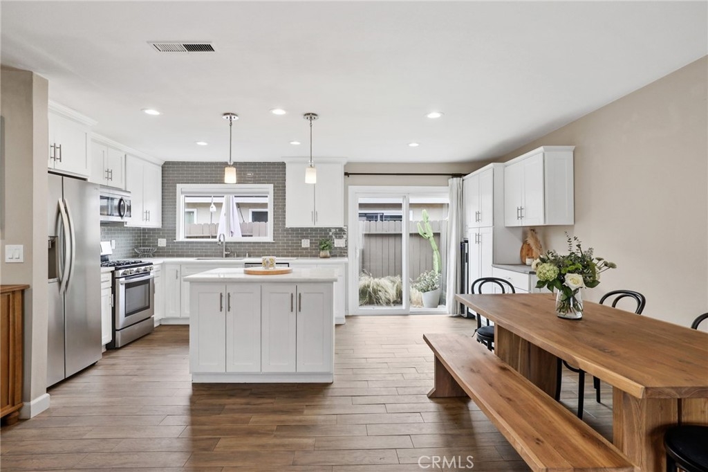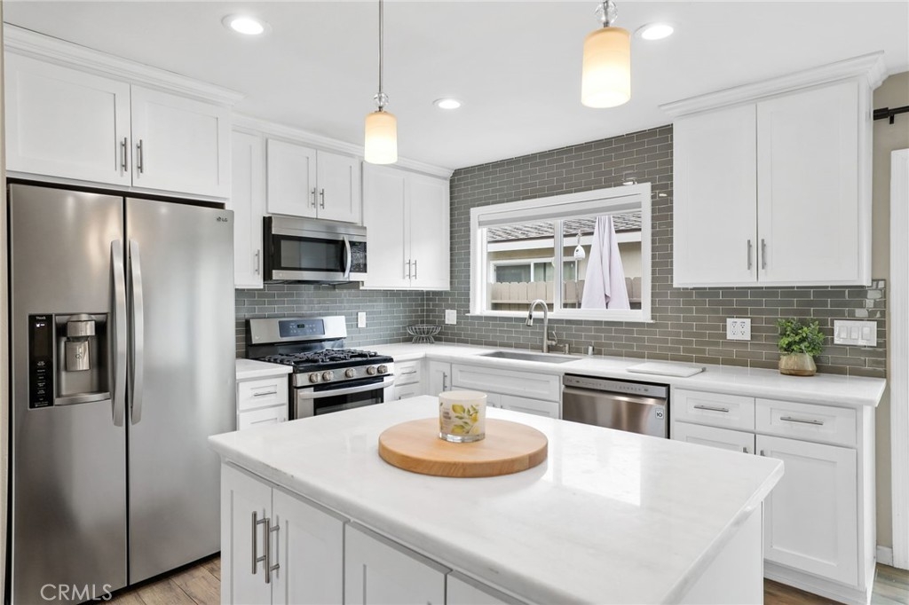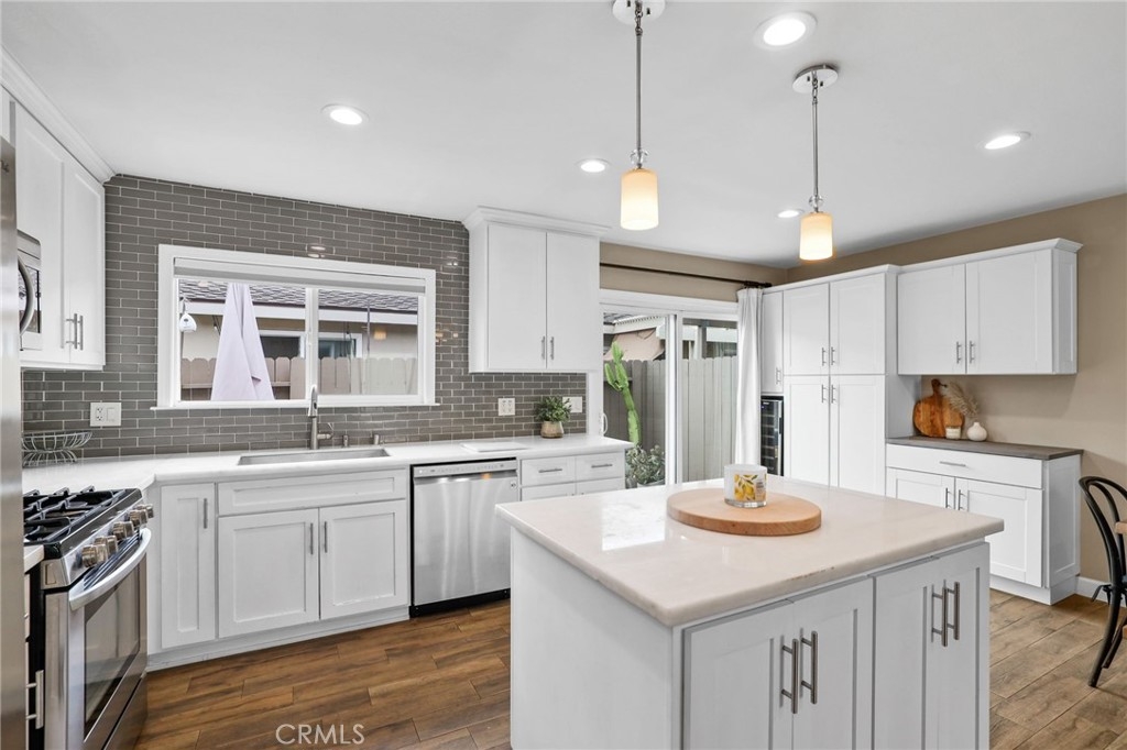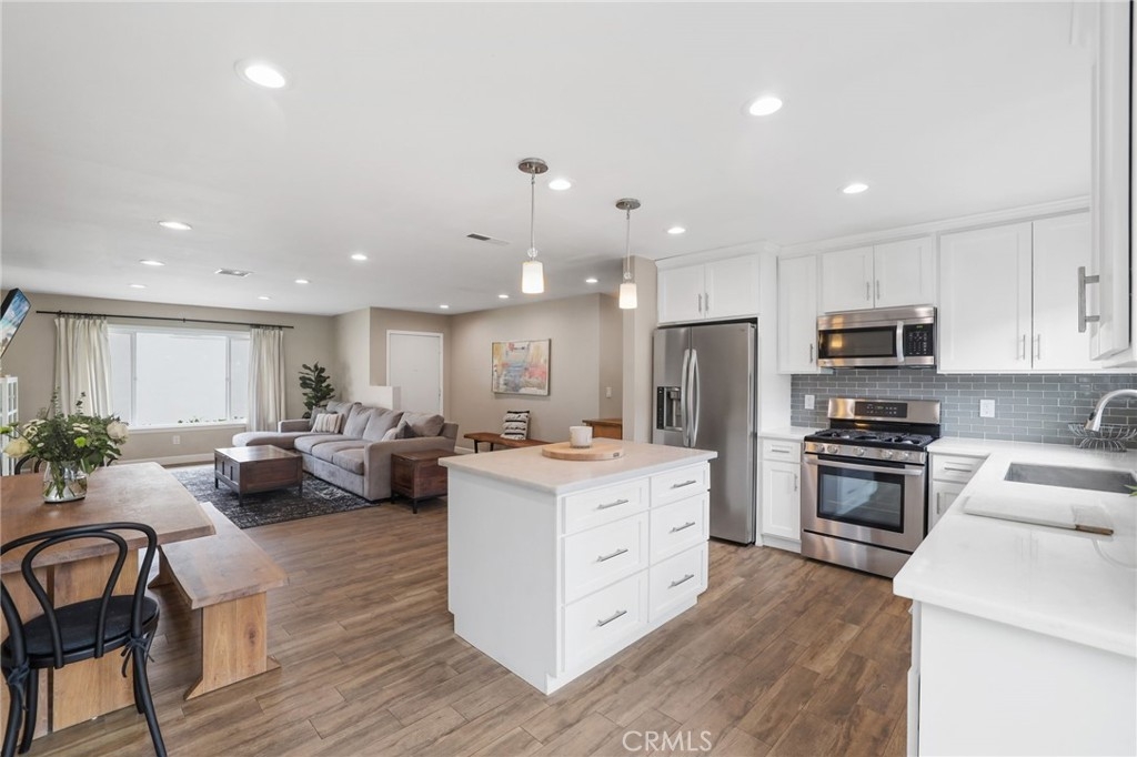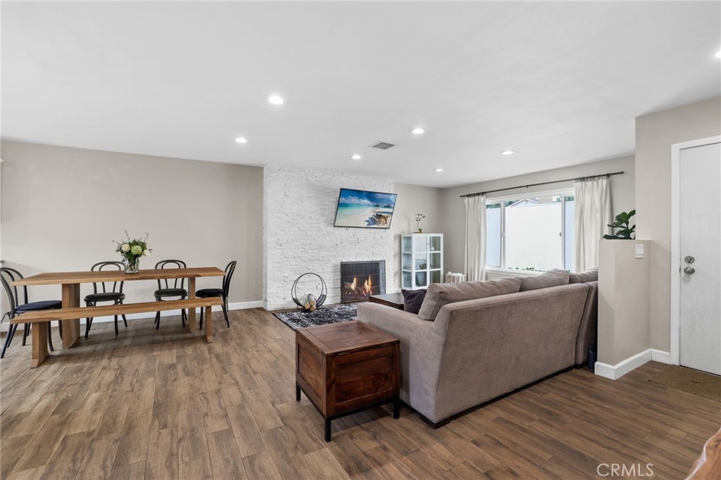We know that this market has been a bit of a roller coaster ride, full of ups and downs. Fortunately, we have something better to share with you… that’s more like a leisurely cruise down Main St. 12700 Newport Ave #6 is a completely remodeled and stylish single-story condo, located in a private community less than 10 mins from Old Town Tustin. Entering the home, you’re welcomed by an open concept with tasteful contemporary design, straight from your favorite home decor show. The sunlit living room is generously sized, complete with a gas fireplace that also acts as a serious statement piece. Traveling towards the kitchen, there’s enough space for a large family-style dining table, which allows for plenty of hosting and entertaining. Speaking of hosting, family or guests can gather around the large island or dine al fresco on the private patio. You know how sometimes a kitchen remodel becomes more style over function? Well, that didn’t happen in this home. This kitchen is finished with stainless steel appliances, quartz counters, TONS of cabinet space including functional drawers in the island, AND a large built-in pantry with wine fridge and coffee bar. Almost too much to list. Wood-patterned tile floors carry throughout the home; both a durable and stylish choice. Located off the hall, you’ll find two bedrooms and a remodeled full bathroom. Finishing off the home is a large master with two large closets and an ensuite complete with a dual vanity, walk-in shower, stackable full-sized washer and dryer. Within the community, you’ll be glad to see well-maintained exteriors and landscaping, as well as a community pool, clubhouse, and your own 2 car garage. HOA fees cover water, trash and gas. Electricity is the only utility you pay. And outside of the community, your options are endless. Enjoy close local spots like The Lost Bean, or Tustin Brewing Company, get your shopping done at one of the many local markets. And for dining/entertainment, take the less than 2 mile trip to Old Town Tustin. For the commuters, the 5, 55, and 22 freeways are all a short distance from home. Well, you’ve hung in long enough. What are you waiting for? Tour today!