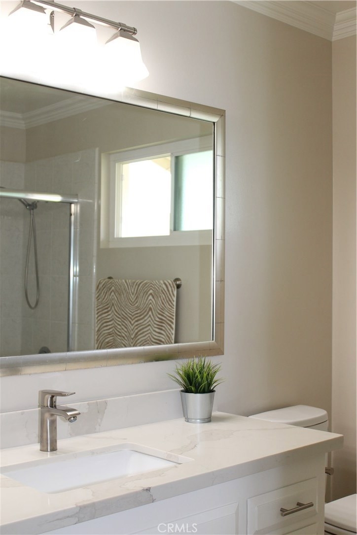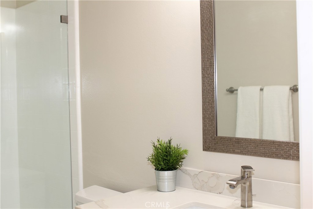 Remolded SINGLE LEVEL END UNIT - 3 BEDS and 2 BATHS with an over-sized 2-CAR GARAGE. No one above or below and only one shared wall! This RARE GEM is located in a PRIME SPOT in the QUIET, PRIVATE GATED COMMUNITY of TUSTIN VERDES and is an ABSOLUTE - MUST SEE!! This GORGEOUS home boasts a large living room with a cozy fireplace and huge windows allowing significant natural light to stream through. Newer Bamboo Hardwood Flooring in the Entrance, LR, DR and Hallway with Porcelain Tile in the Kitchen and Baths. Many upgrades including: Beautiful Calacatta Quartz Counter-tops (Kitchen & Baths); Designer Sub-way Tile Backsplash, Lighting and Fixtures were newly installed; Newer SS Appliances, Sinks, Garbage Disposal, Plantation Shutters, Recessed Lighting, Crown Molding and Baseboards have been installed throughout. 3 Good-sized Bedrooms include new WW Carpeting with Over-sized Mirrored Wardrobe Closets or a a Walk-in Closet in each BR. There's a wonderful Large Patio off the Kitchen for outdoor enjoyment and a Semi-secluded Front Yard for kids to play! Lots of Storage Space inside the home and in the 2-Car Garage which is conveniently located right in front of the unit. Central Heat and Air adds comfort to this INCREDIBLE Unit which is like a Single Family Home. Award Winning Tustin Schools are nearby. The Monthly HOA Fee is $380 - BUT ... It includes EVERYTHING except Electricity & Cable TV. Community Pool & Clubhouse.
