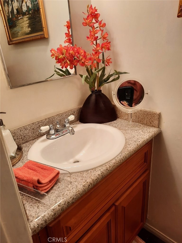 Desirable Tustin Village townhome. Well-maintained 2 story unit with own patio, accessible from the upgraded glass sliding doors in both the living and dining rooms, which allows plenty of light into the spacious living areas. The kitchen is upgraded with beautiful cabinets and granite countertop. Two large bedrooms are located upstairs (also with energy-efficient new windows) with a full bathroom that features both a separate shower and bathtub. One covered parking is assigned. Community amenities include a clubhouse, two pools, and and dog park.