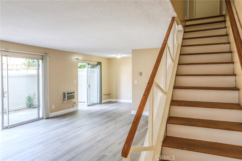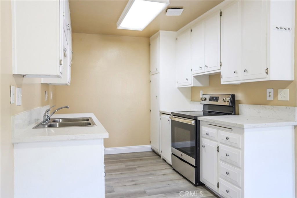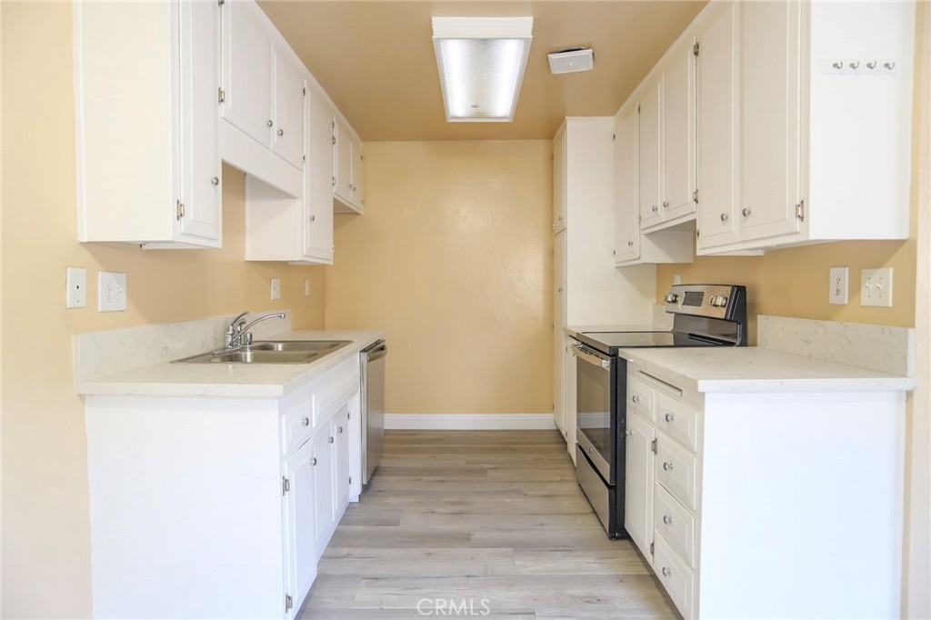 Nestled within the boundaries of the highly rated and sought after Foothill High School, this townhome boasts of brand new vinyl plank flooring, beautiful quartz kitchen countertops, all stainless steel appliances including a stove and a brand new dishwasher. Downstairs you have a cozy dining area and a half bath with granite countertop. The sliding doors off of the dining and living room areas provide lots of natural light and also provides access to a good sized patio enclosed by a new vinyl fence. Upstairs are 2 good sized bedrooms and a full bath with granite countertop. Low HOA currently at 290/mo. includes water and trash. The unit is unique because it has its own 1 car enclosed garage (garage#125) which has shelves for additional storage plus 1 more parking spot in unassigned spaces within the complex. There are 2 coin laundry facilities, a swimming pool, a kids pool, a private park, a dog park, and a clubhouse within this compound.