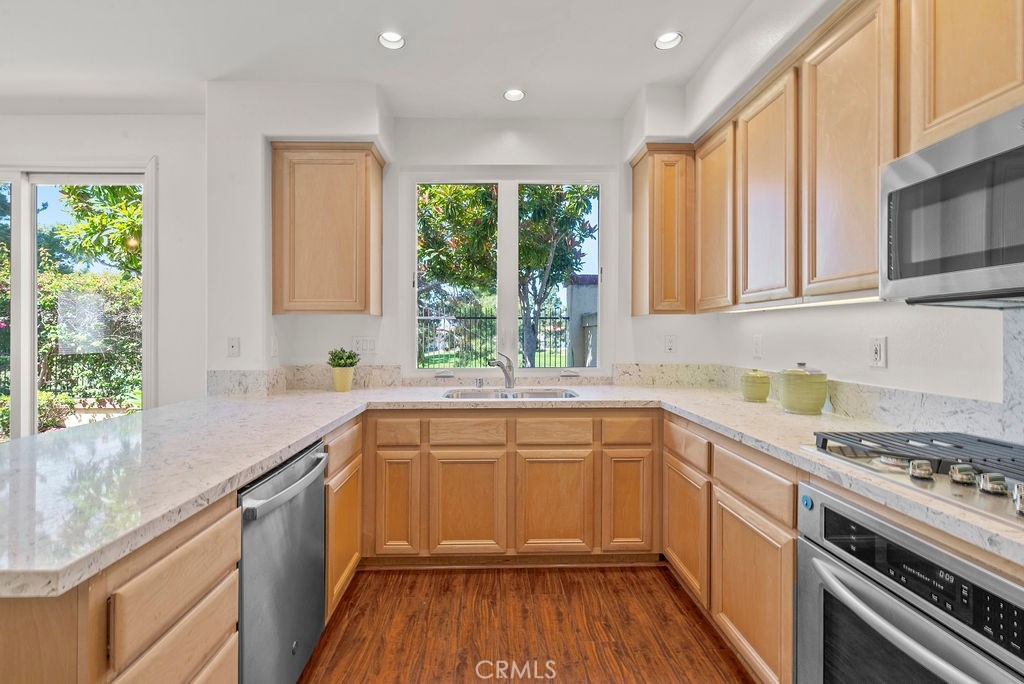 On Golf course !! Sunset View !! 180 degree of greens and trees!!! Rare find right on Tustin Ranch golf course sunny southside, backyard facing 9th hole, flagstone patio with Bar-B-Q, flowers and low maintenance garden, perfect for relaxing after work and or entertainment...... Newly remodeled kitchen with new quartz countertops, new stainless 36" cooktop, new microwave, new double hang kitchen window with view....... New Milgard double panel window has lifetime guarantee...... New Walk-In master shower with dual shower head and seat...... Newer designer paint thru all house...… Downstairs has newer hardwood floor, high ceiling living room, Hunter Douglas see thru view window coverings, large walk-in in master bedroom, also feature view of the greens thru large window. Attached two car garage with designer cabinets and work space..... shows well. Excellent school-Pioneer Elementary, pioneer middle High, Beckman Highschool, Several parks nearby-Valencia Park, Tustin ranch Sport Park, Citrus Ranch Park etc. Tustin Market Place has lots of restaurant, shops, Regal Cinemas. This home on Tustin Ranch Golf Course could be a fun place to live if you add the membership. Pls submit Prequalified, proof of funds, and or any support information