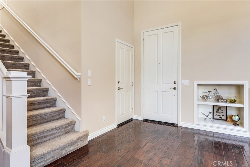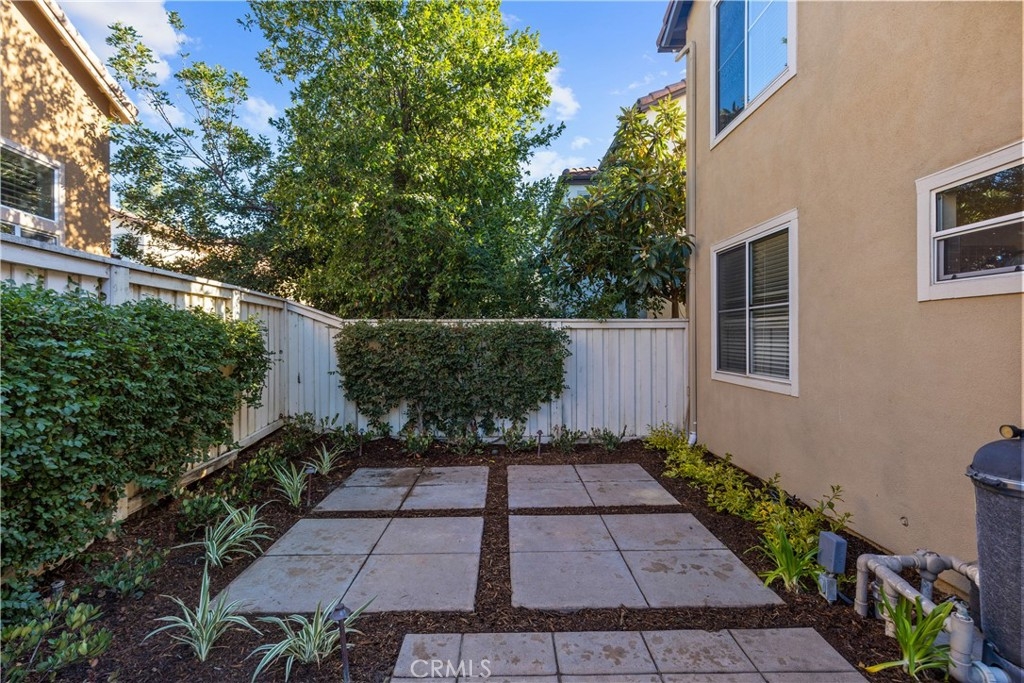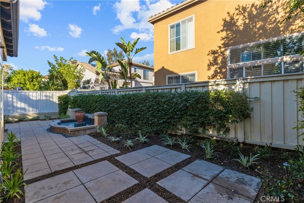 In the desirable gated community of Valencia in Tustin Ranch. This home is ready to move in. It features 3 bedrooms and 3 bathrooms. (one bed & bath on the lower main floor). Cathedral ceiling in the open living room with fireplace and dining room with sliding doors to the yard. Kitchen opens to dining with lots of cabinets. Wood flooring in the living and dining and downstairs halls. Master suite has double sinks and walk-in closet with organizers. Landscaped backyard with multiple patio area with Large fountain. Two car garage with cabinets. Valencia community has in ground association pool. Minutes from Tustin Marketplace, Tustin Ranch Sports Park, Peters Canyon Hiking trails. Close to Hwy 5 and 241/261 Toll Road. This interior location home is a must see.