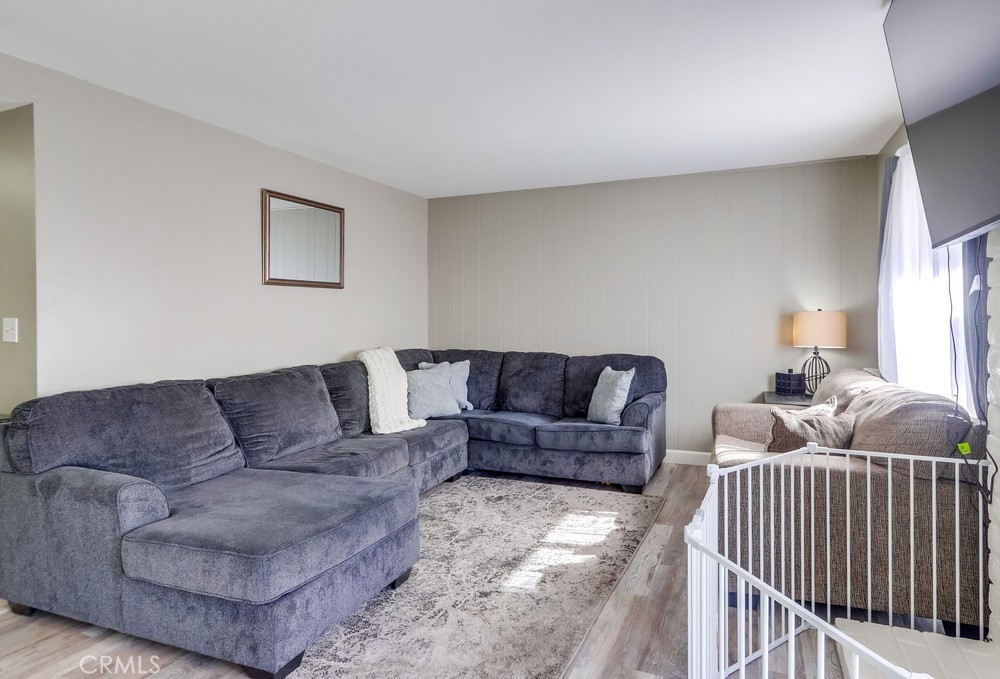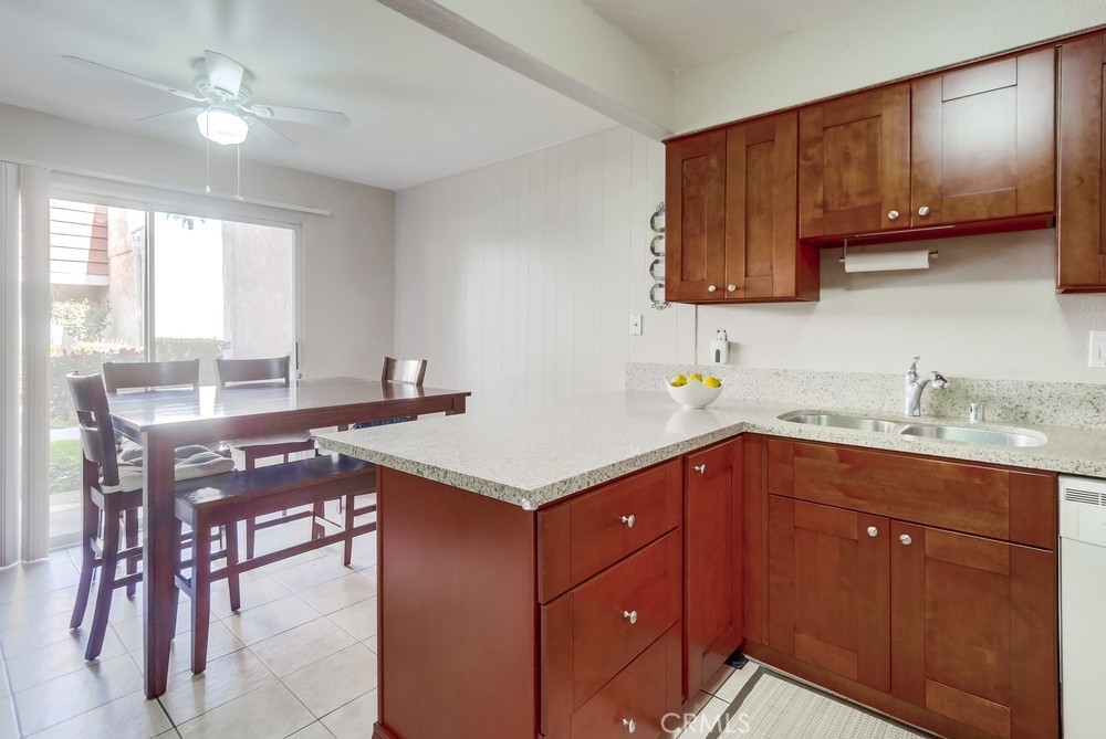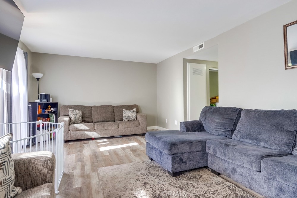 Gorgeous three bedroom two bathroom end unit with only one common wall located in Tustin! Pathway with nicely maintained landscaping welcomes you to the front door. Plenty of natural light floods in from the windows in all spaces of the home. New laminate flooring and paint throughout! Living room features a fireplace and plenty of space for guests to visit. The dining room is just off of the kitchen and has direct access to the back yard through sliding glass doors. Plenty of counter and cabinet space in the kitchen. All bedrooms feature vaulted ceilings and new recessed lighting. Conveniently the washer and dryer hookups are right outside the bedrooms in the hallway also has built in storage! The backyard is semi-shaded and also could be a spot for entertaining guests. An abundance of restaurants are near by. This home won't last long!