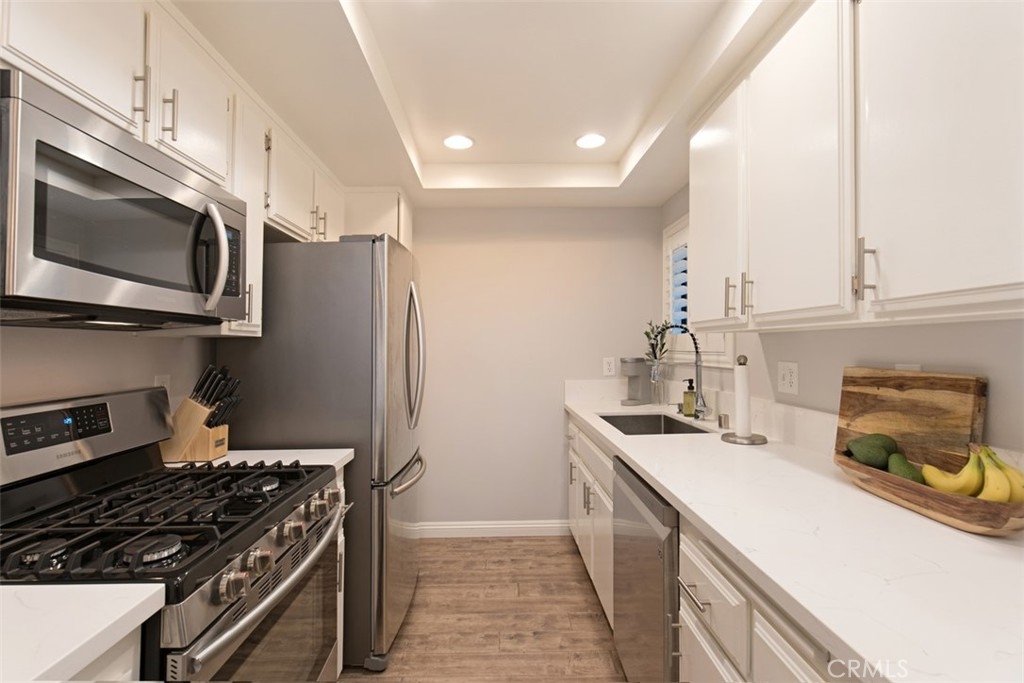 ***** 5 STAR OPPORTUNITY *****This BEAUTIFUL TOP to BOTTOM REMODELED property IS AN AMAZING VALUE in OC!! SUPER CLEAN... Truly Turnkey! Top of the line finishes have recently been completed on this 1 bedroom 1 bath with interior laundry and enclosed patio yard. Lower unit, with covered parking is beyond BEAUTIFUL...The photos speak volumes, but in PERSON... its Unbelievable! Enjoy newer flooring, paint, quartz countertops, baseboards and trims, stainless appliances, fabulous fixtures and gorgeous plantation shutters. Low HOA's and Low Tax Rate... A monthly payment for this property could be in the range of $1900 to $2100 in TOTAL! PAY YOUR OWN MORTGAGE... NOT SOMEONE ELSE"s. Fantastic Amenities include a resort style pool/spa/clubhouse in this lovely and well established, manicured gated community. Conveniently close to shopping, dining, schools/churches and I-5/55 Fwys. ALL Covid showing best practices to be adhered to, making it safe for you to see! DONT MISS THIS OPPORTUNITY!!