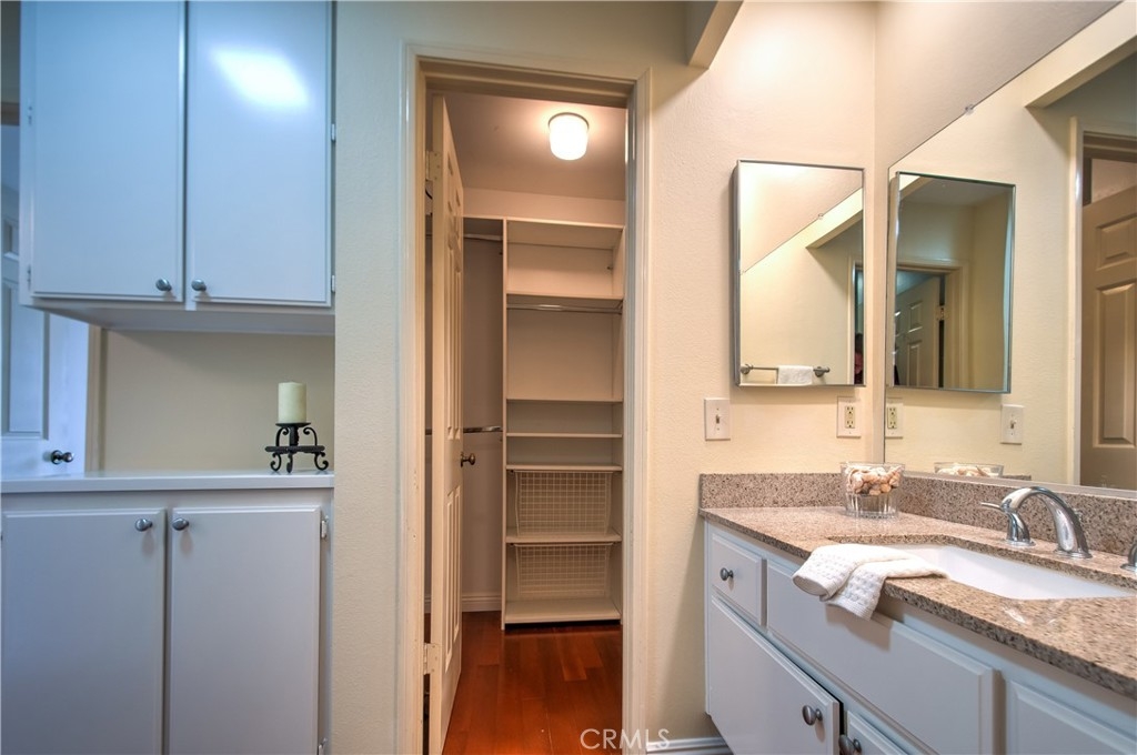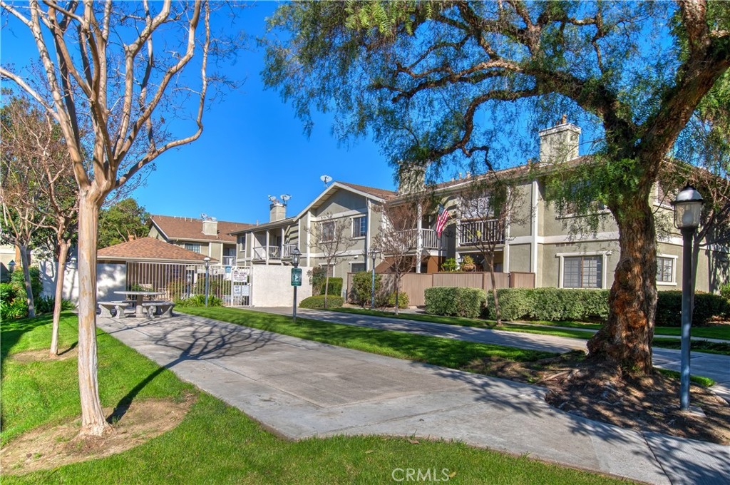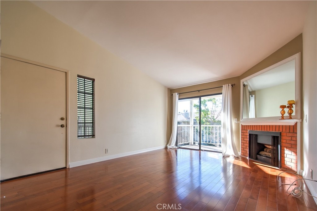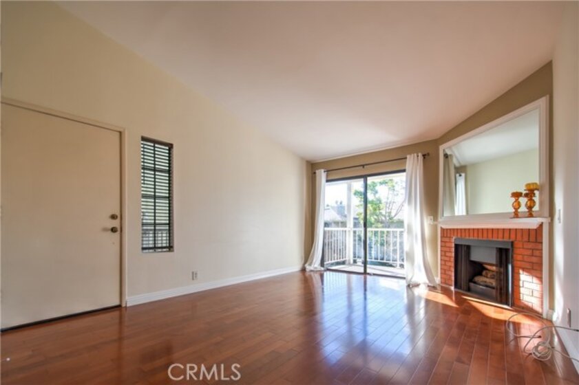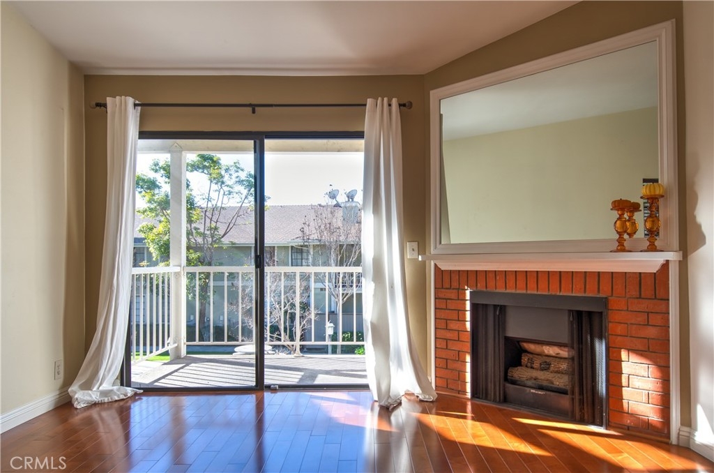 UPPER UNIT one bedroom condo situated in a gated community in Tustin. Bright and quiet. Beautiful wood flooring throughout. Kitchen with granite counter tops and back splashes. Spacious living room with vaulted ceilings and fireplace. Sliding door off the living room to the balcony with VIEW of the greenbelt and community spa. Inside laundry. Custom built Walk-in closet. Plenty guest parking spaces. Only ONE HOA and NO MELLO ROOS. Neighborhood amenity include: pool, club house, spas and picnic areas. Walking distance to the Tustin Height Center for shop, restaurants, Trader Joe's, Michael's, Petco and much more...