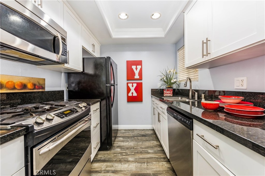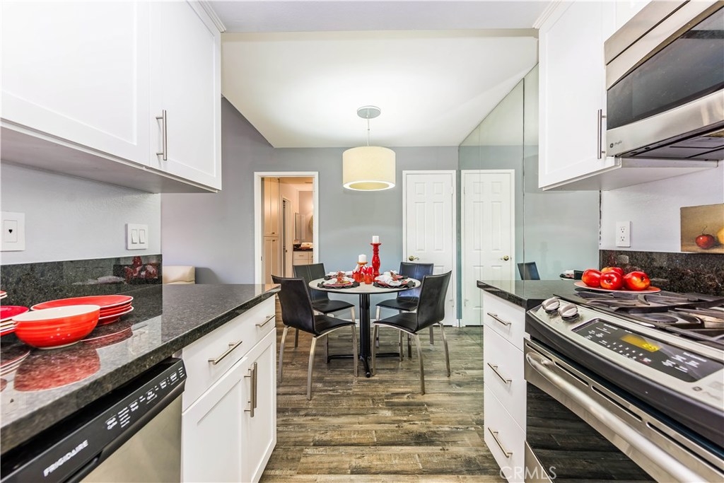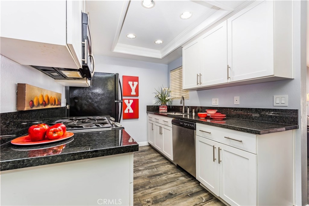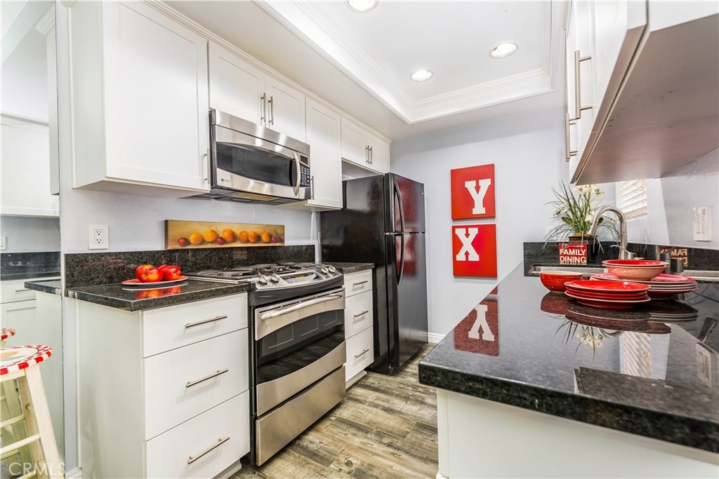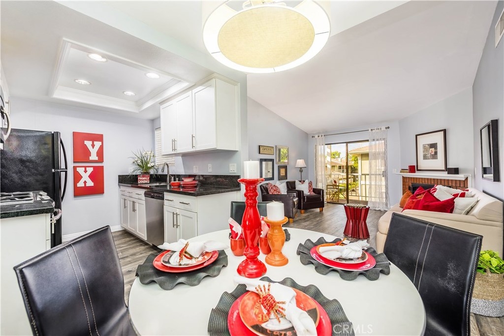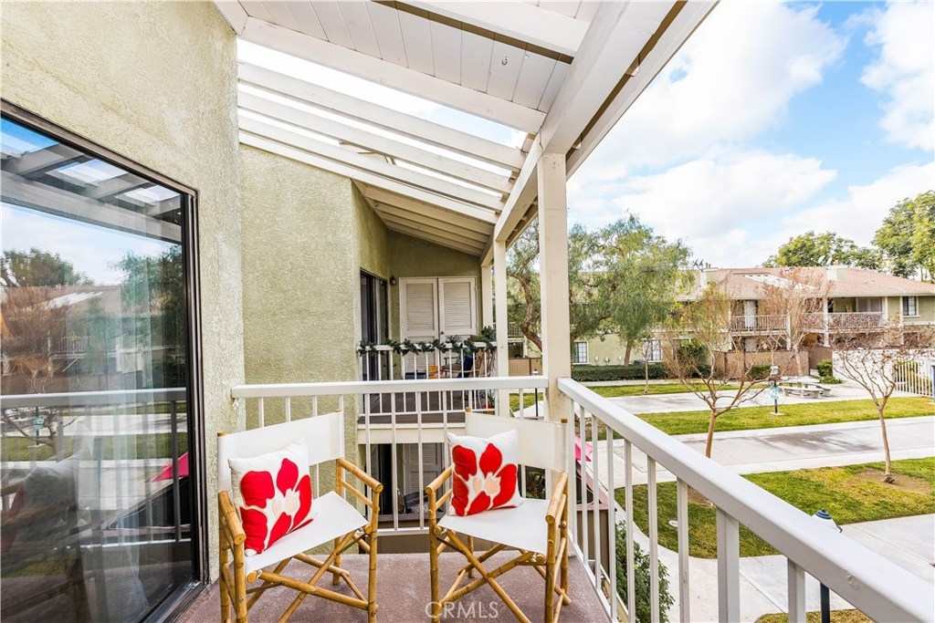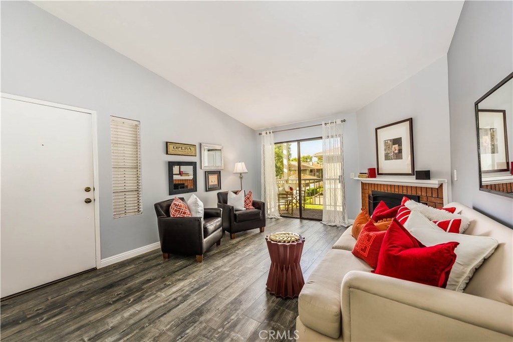 Beautifully Remodeled Light and Spacious Upper Level 1 Bedroom/ 1 Bath Condo in Highly Desirable Gated Community of Village Homes in Tustin. Open Floor Plan features Spacious Living Room with Vaulted Ceiling, Fireplace and Sliding Doors Leading to Balcony with Sizable Storage Closet; Dining Area; Large Bedroom with Ceiling Fan and Crown Moldings. Highlights include: Kitchen with Newer White Cabinets, Granite Counter Tops, Built-in Microwave, and New Dishwasher; Freshly Painted Interior, New Quality Laminate Flooring; Spacious Walk-in Closet, Inside Laundry, Central A/C, Recessed Lights. The Unit is in Immaculate Condition and Move-in Ready! One Assigned Carport with Additional Storage. Plenty of Extra Parking for Guests. Enjoy Well Maintained Community with Wonderful Amenities: Pool, Two Spas, and Club House. Ideally Located within Walking Distance to a Shopping Center and Restaurants. Convenient Access to 5/55 Freeways and 241 Toll Road. One of the Best Values in Orange County! Welcome Home!