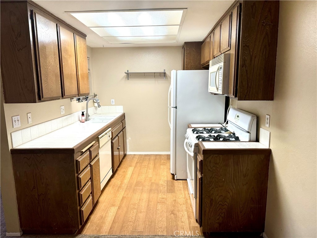 This light and bright downstairs 2 bedroom, 2 bath end unit in the charming neighborhood of Village Homes is waiting for you to renovate and make this your new home or investment property. Located in the heart of Tustin, less than one mile from the quaint shops and eateries in Old Town. This home boasts a lot of potential from the spacious living room with cozy fireplace to the spacious primary bedroom with master bath and large walk in closet. Relax and enjoy your morning coffee on the private patio. Take a stroll along the greenbelt or enjoy the community pool or one of two in ground spas. Your carport garage space is just a few steps away from your front door and offers additional parking spaces for your 2nd car or guest. This home offers the security of a gated entrance and conveniently located near schools, shopping and dining all within walking distance. The home comes complete with a stackable washer/dryer and refrigerator. Hurry, this unit will go fast!